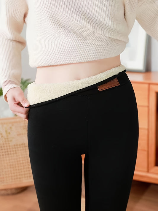 Women's Leggings ( Random Color Lining ), Solid Winter Velvet Thick Thermal Pants Warm Cotton Long Leggings