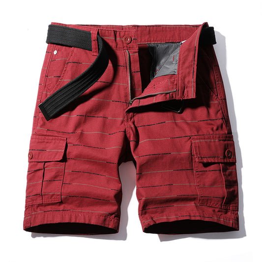 Work Shorts men's new washing stripe Multi Pocket casual pants pure cotton six point sports men's pants