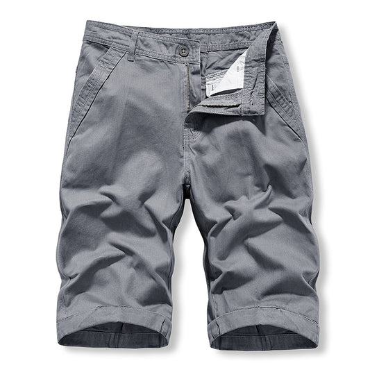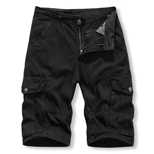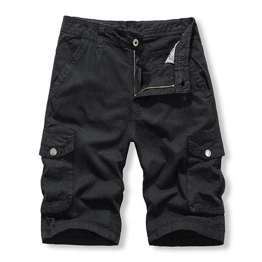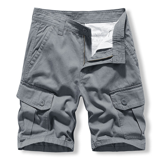 Work Shorts men's washed solid color Multi Pocket casual pants pure cotton six point sports men's pants