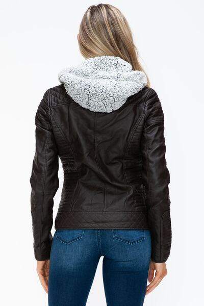YMI Faux Layered Double-Zipper Jacket with Fuzzy Hood
