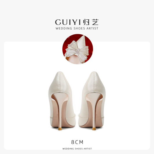 归艺主婚纱婚鞋女新款水晶蝴蝶结新娘鞋白色法式婚礼不累脚高跟鞋