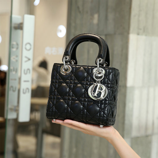 名牌奢侈品包包女2024新款真皮四格戴妃包mini女斜挎单肩手提包夏