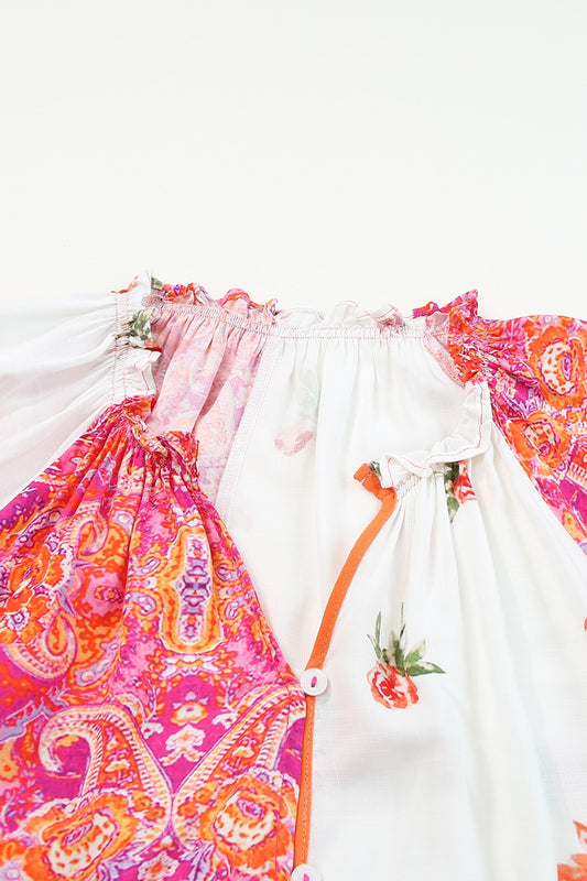 Printed V-Neck Short Sleeve Blouse