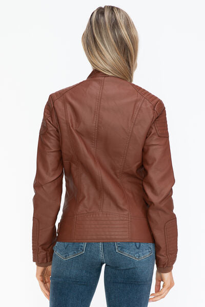 Snobbish Faux Leather Biker Jacket with Side Zip Pockets