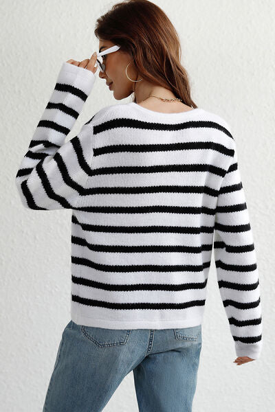 Open Front Long Sleeve Striped Cardigan with Pockets