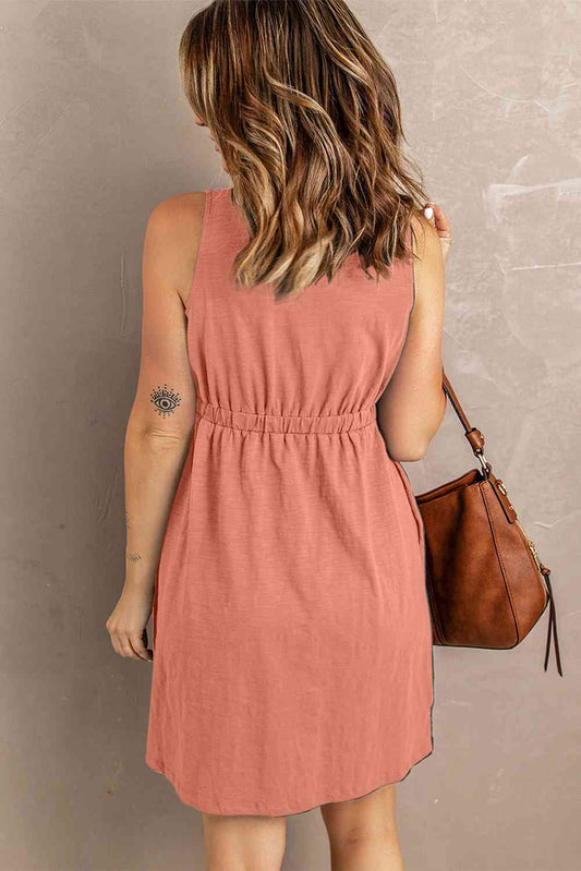Button Front Empire Waist Sleeveless Slit Magic Dress