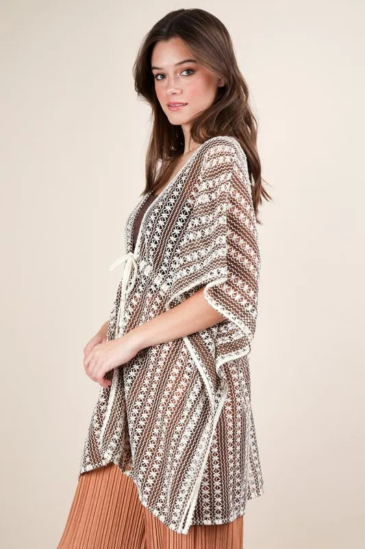 ADORA Fishnet Knit 3/4 Sleeve Cardigan