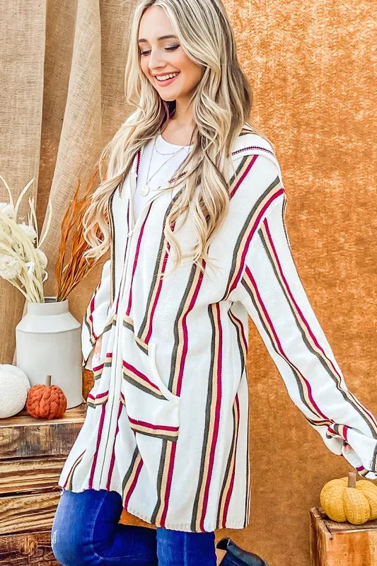 And The Why Rainbow Stripe Zipper Up Cardigan with Hood