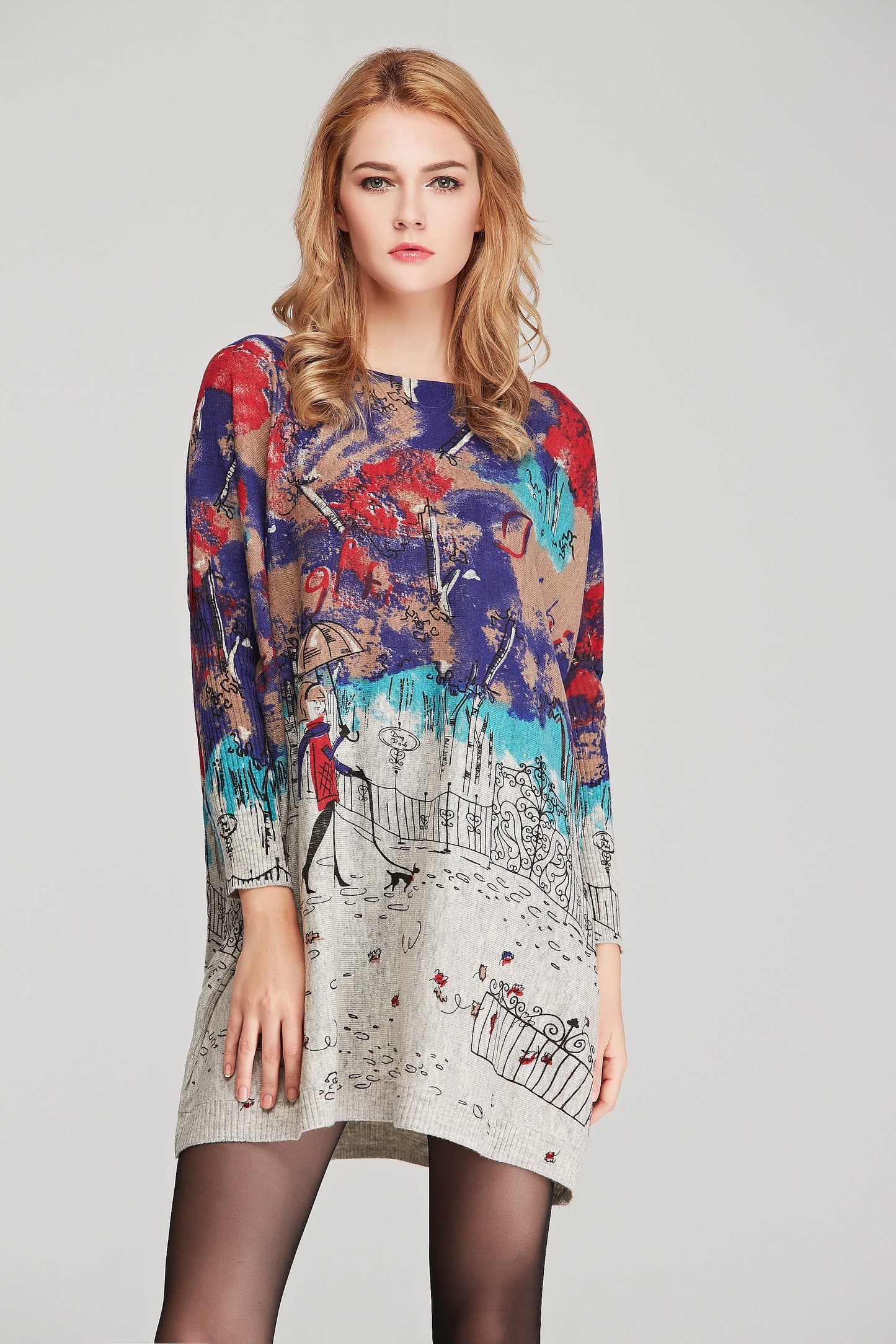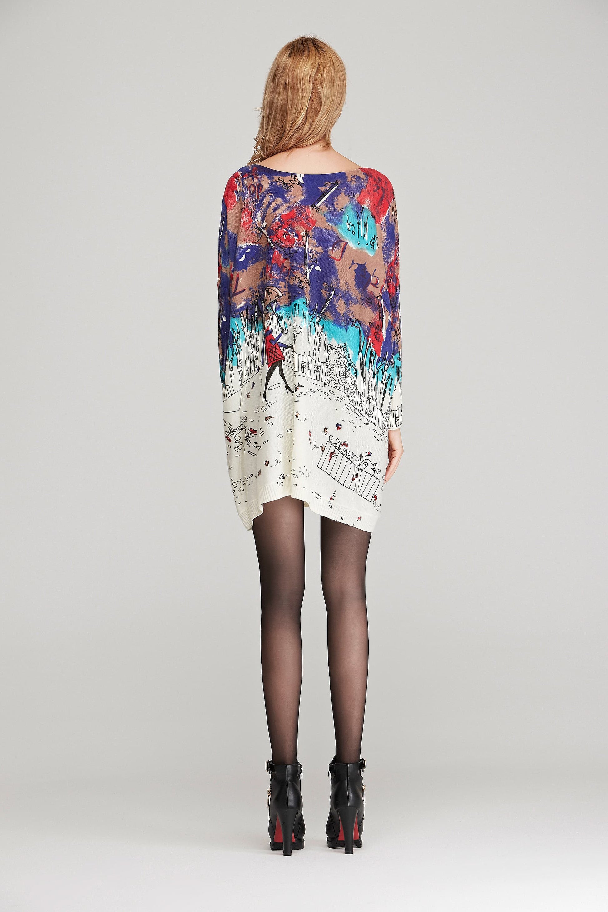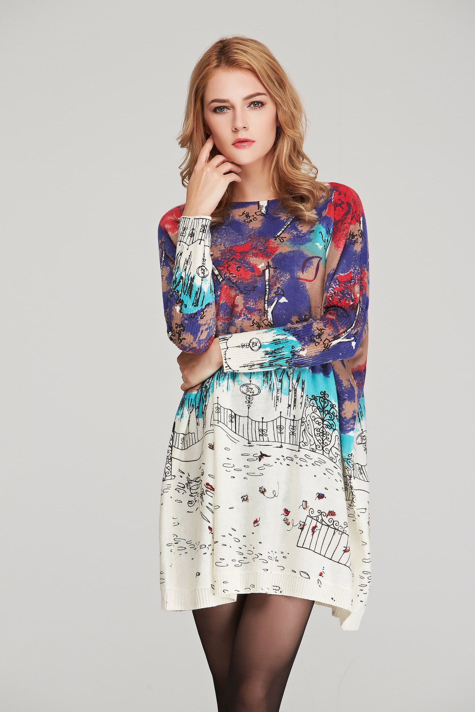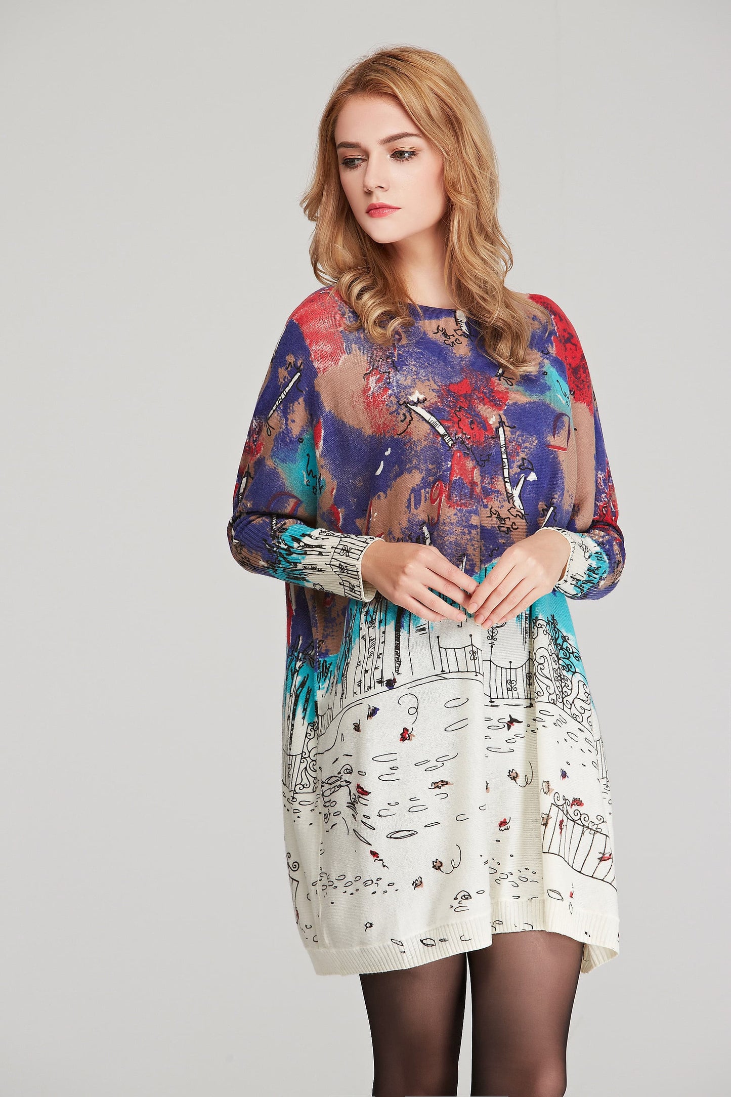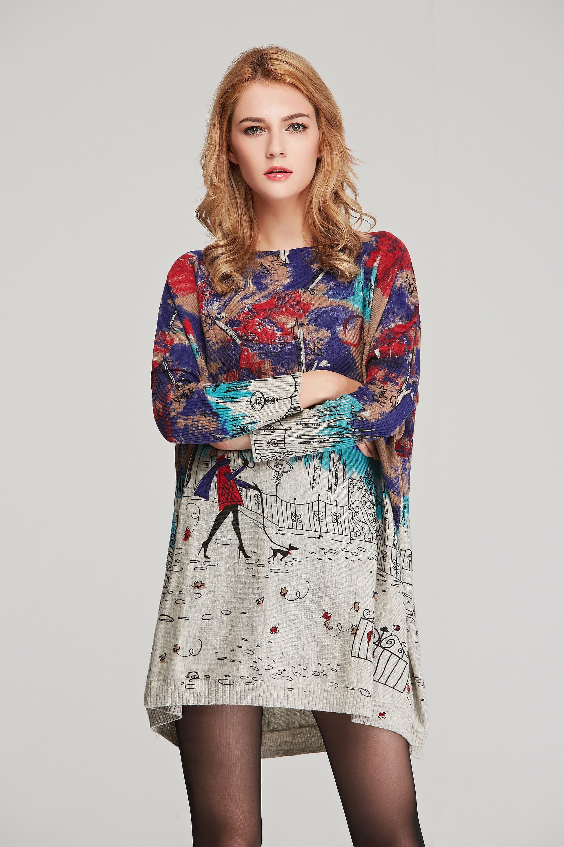 Printed Round Neck Longline Knit Top