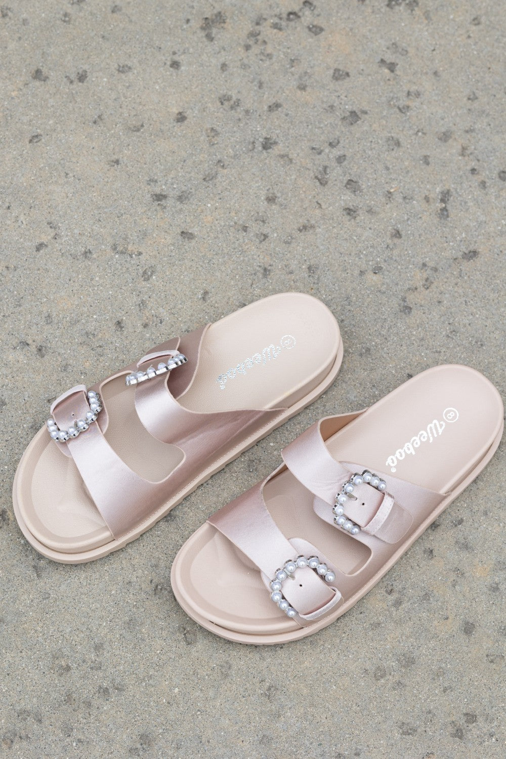 Weeboo Jewel of the Sea Faux Pearl Buckle Slide Sandals