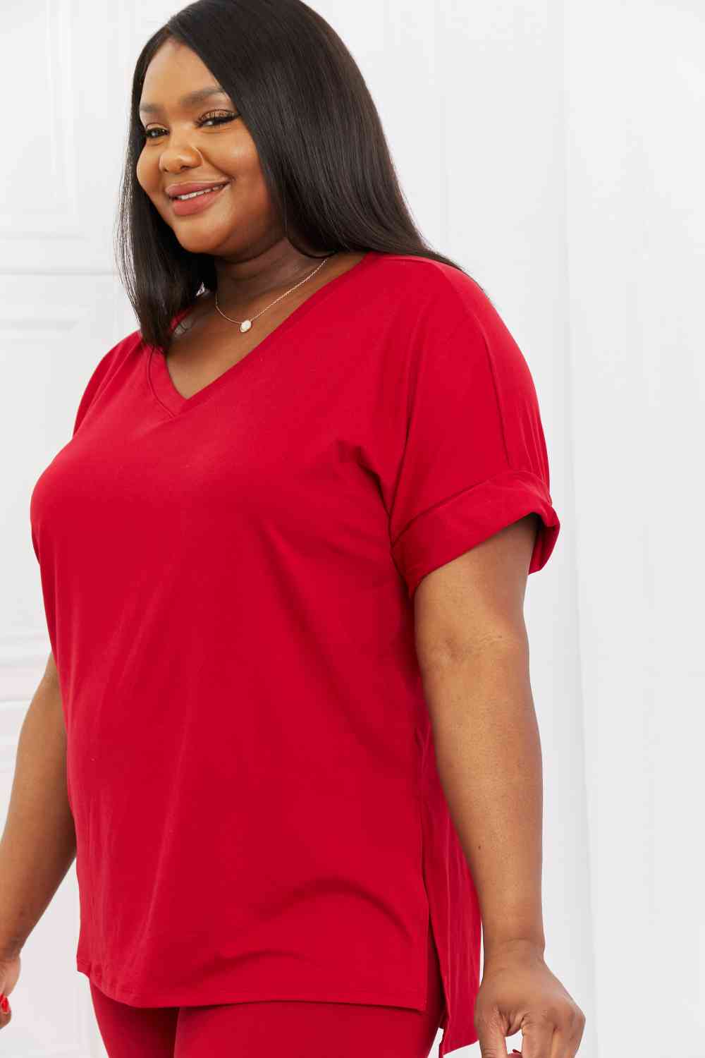 Zenana Full Size Quiet Moments Brushed Lounge Set in Burgundy