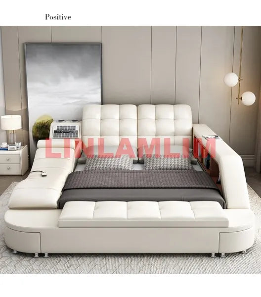 Genuine Leather Tech Smart Bed Multifunctional Beds Ultimate Massage Camas Upholstered Lit with Bluetooth Speaker,Air Cleaner