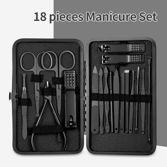 Classic Black Manicure Set Hand Feet Facial Stainless Steel Accessories, 5 Choices