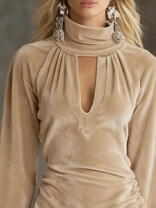 Mesh Mock Neck Long Sleeve Maxi Dress