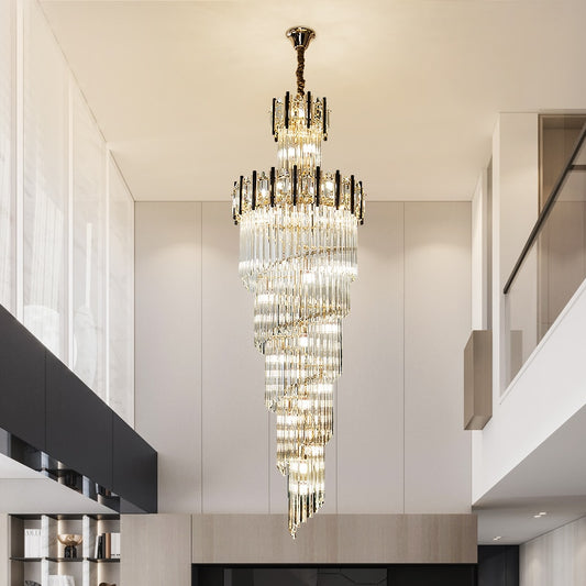 European-style Duplex Building Shandelier Villa Living Room Building Middle Floor Light Luxury Crystal Lamp Hall Revolving