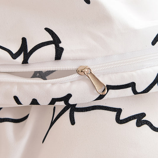 3pcs Love Letter Print Duvet Cover Set (1 Duvet Cover + 2 Pillowcase), Microfiber Bedding For All Season