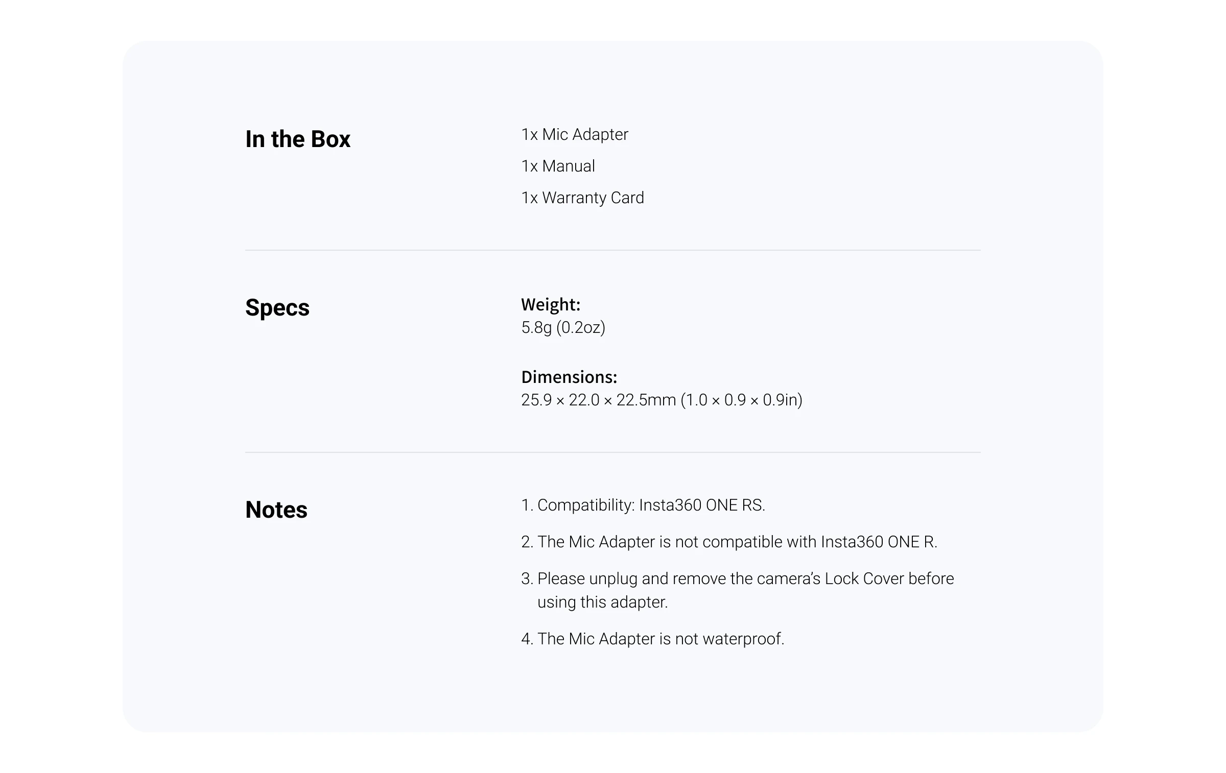 Insta360 ONE RS Mic Adapter