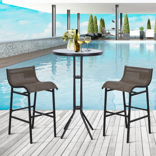 3 Piece Table and Chair Set Outdoor Terrace Bar Bistro Table and Chair Coffee Table and Chair Set - Black/Tan