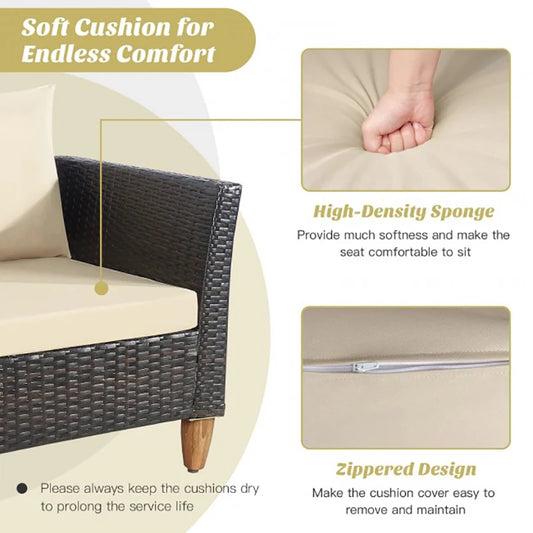 3 Pieces Patio Rattan Bistro Furniture Set with Wooden Table Top Outdoor Pool Garden Courtyard Coffee Table Sofa Set