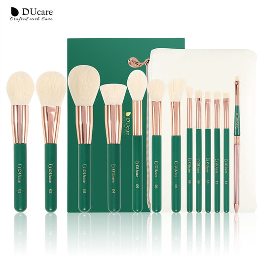 DUcare Makeup Brushes Set Green 13pcs Makeup Brush With Bag Foundation Powder Eyeshadow Eyelash Lip Cosmetic Make Up Brush Tools