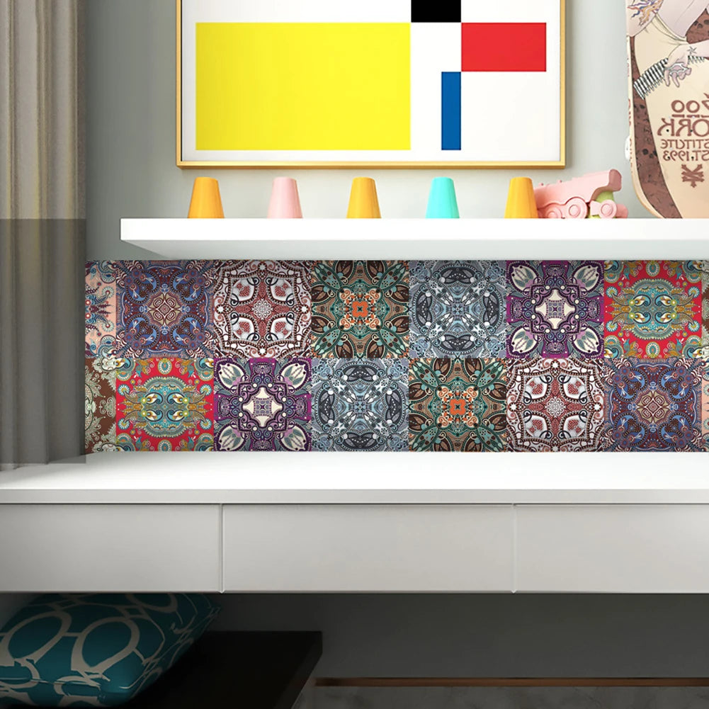 10pcs Self Adhesive Crystal Tile Wall Stickers Mandala PVC Wallpaper DIY Tile Bathroom Kitchen Decor Murals Stickers Removable