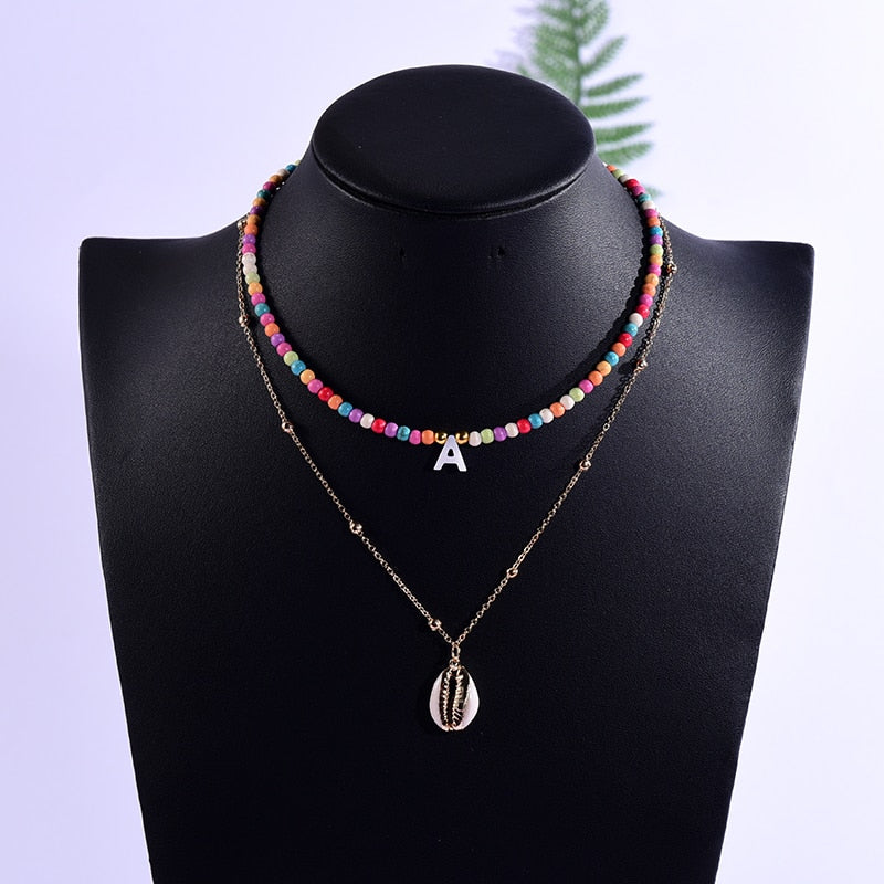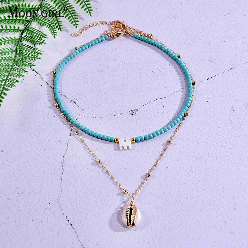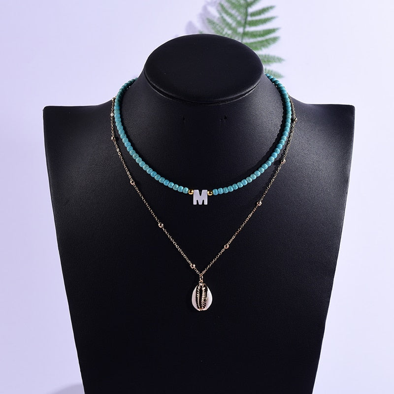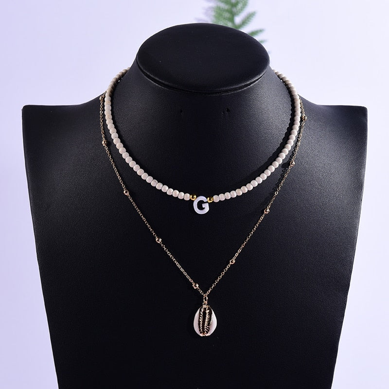 2 Pieces Custom Letter Shell Pendant Necklace for Women Choker Goth Aesthetic Boho Vintage Collier Femme Fashion Summer Jewelry