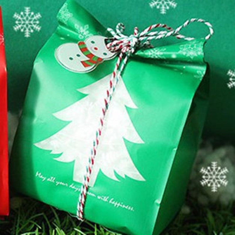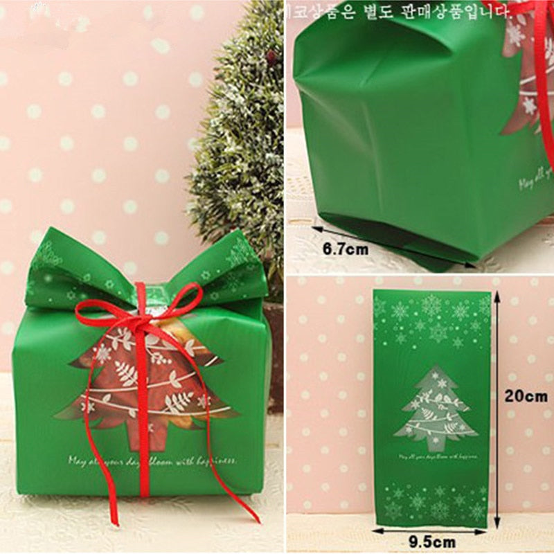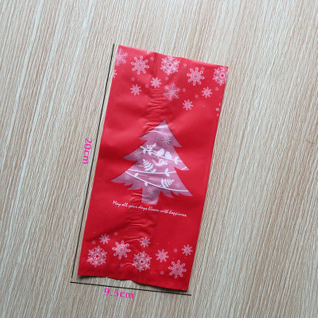 50pcs Red Green Merry Christmas Tree Snowflake Plastic Bag Candy Dessert Bags Wedding Christmas Party Kids Gift Bags Supplies