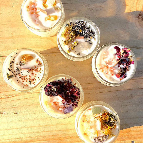 - This candle is 4 oz of hand-poured soy wax in a glass jar with a metal lid. This candle has a wood wick and is infused with our proprietary blend of organic essential oils to promote abundance, wealth and blessings.