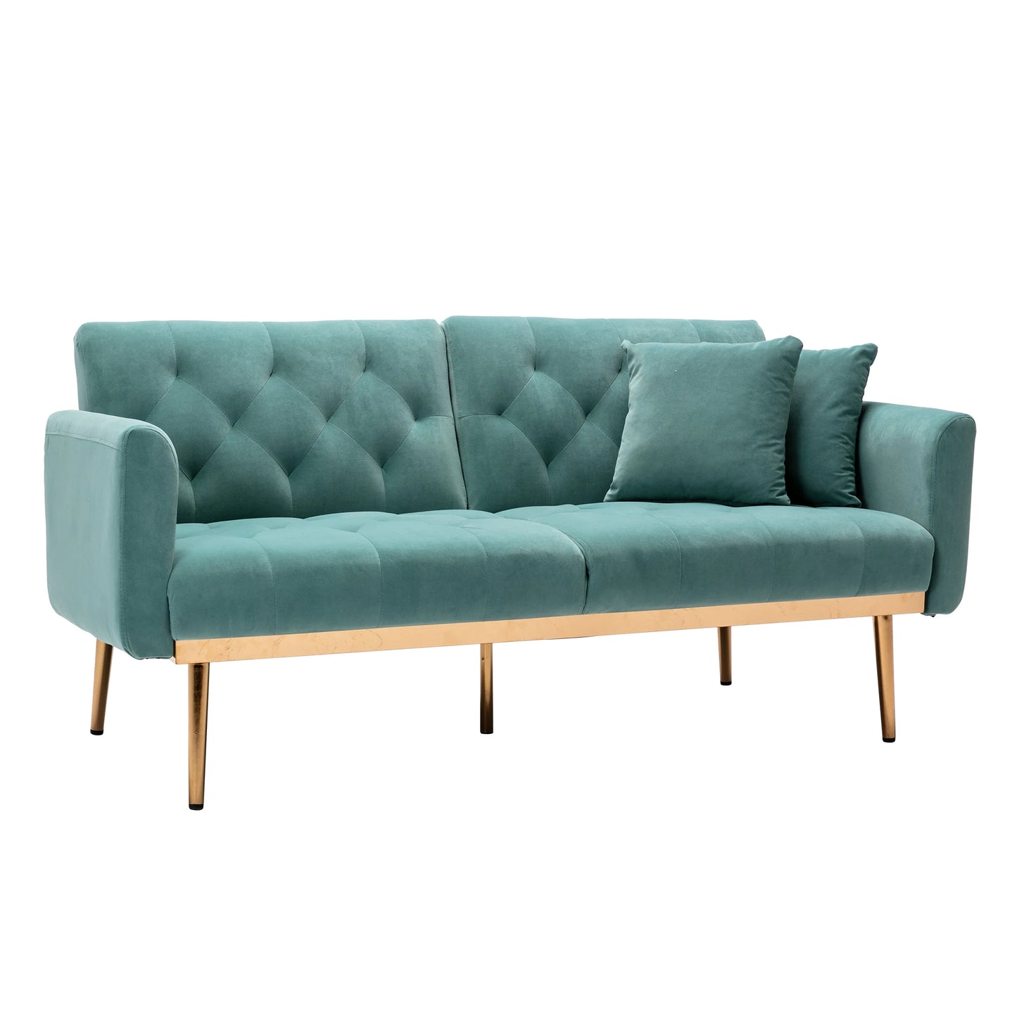 Accent Sofa, Mid Century Modern Velvet Fabric Couch,Convertible Futon Sofa Bed Recliner Couch Loveseat Sofa with Gold Metal Feet