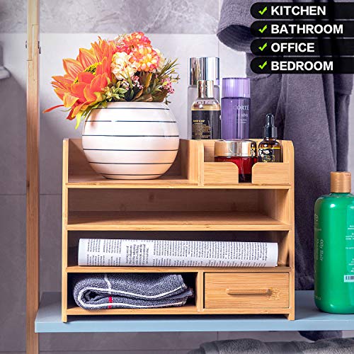 - ✔️ BAMBOO DESK ORGANIZER- Organize and store a wide variety of items including office supplies, toiletries, and much more— Features 4 tiers of storage to maximize space. Measures (33 X 24 X 26cm)
