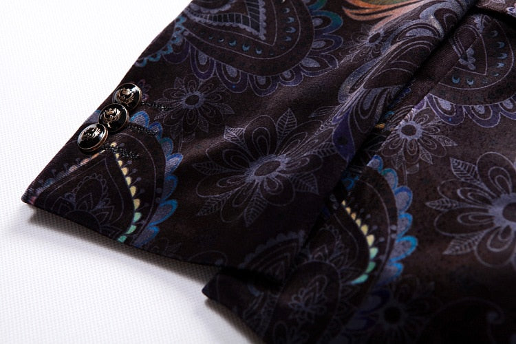 Blazer Men Luxury Print Shawl Collar Suit Jacket Men Wedding Dinner Party Stage Singer Costumes