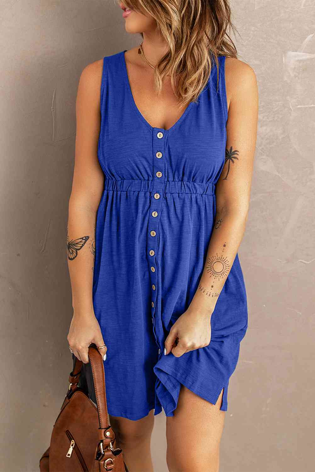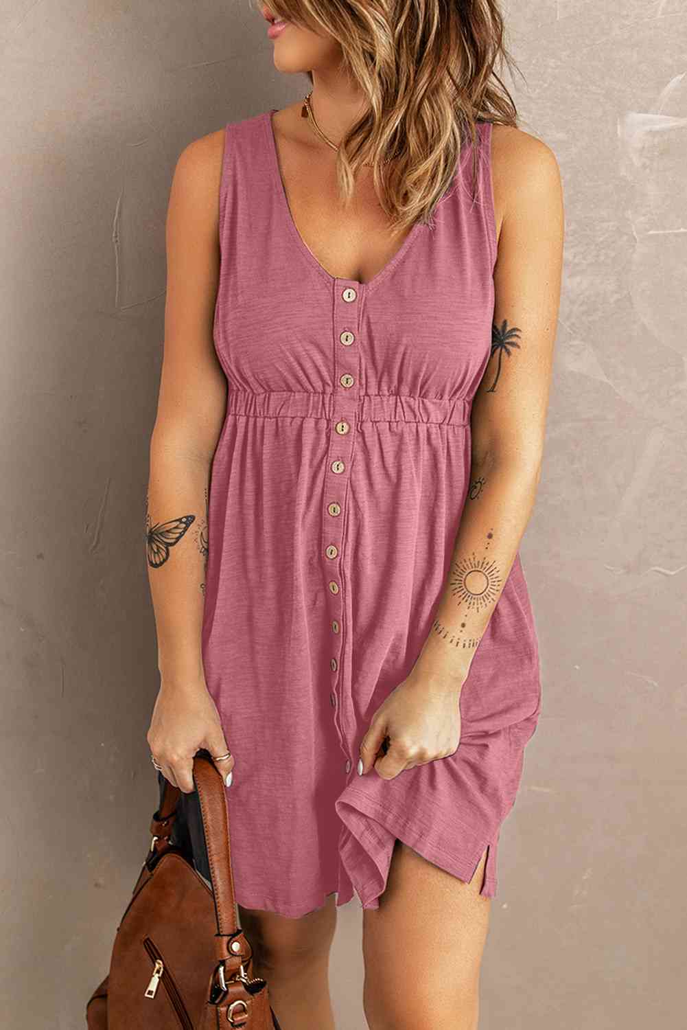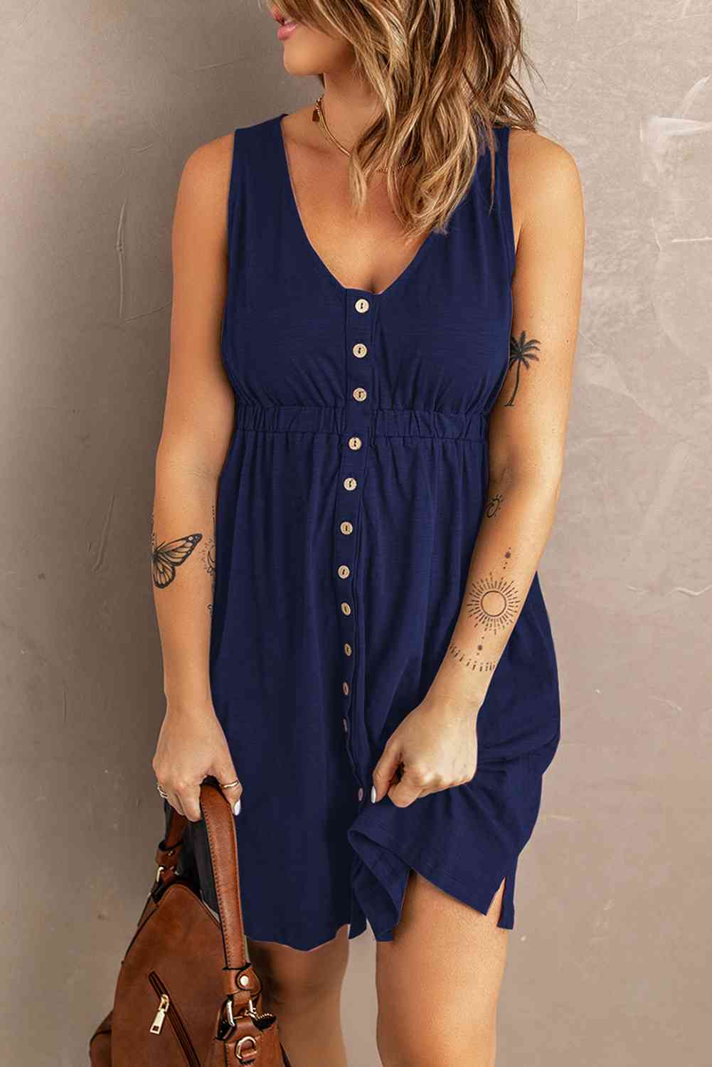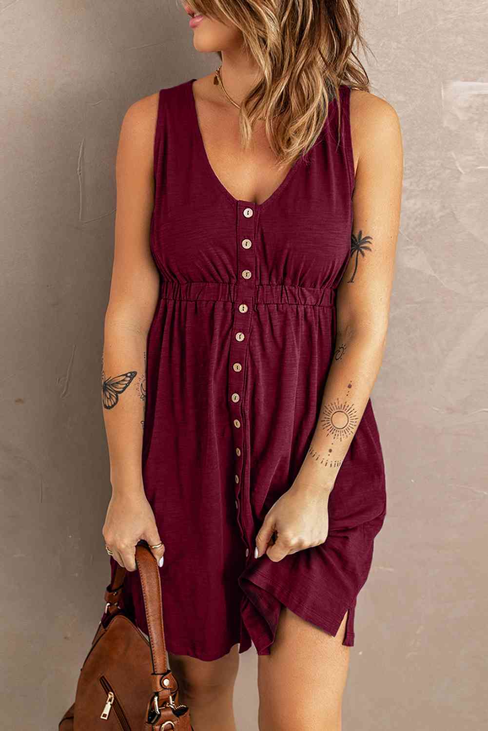Button Front Empire Waist Sleeveless Slit Magic Dress