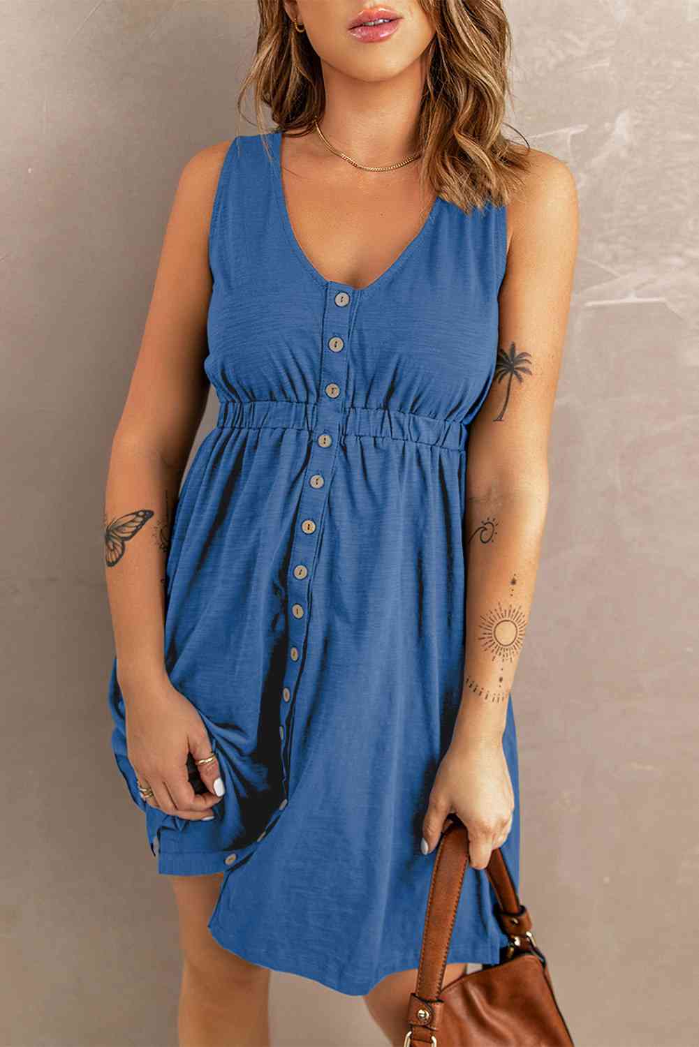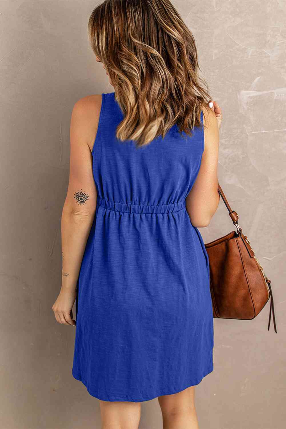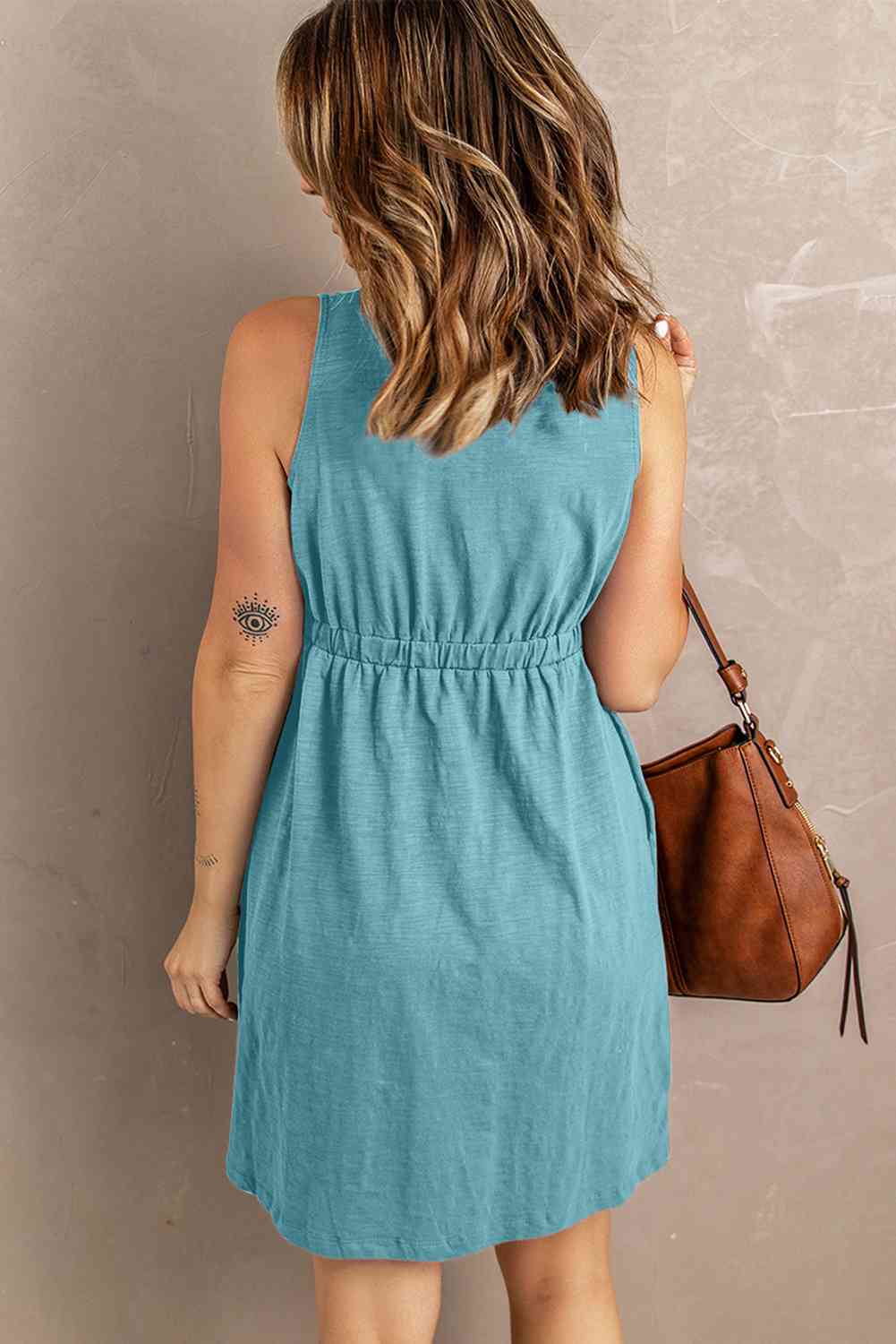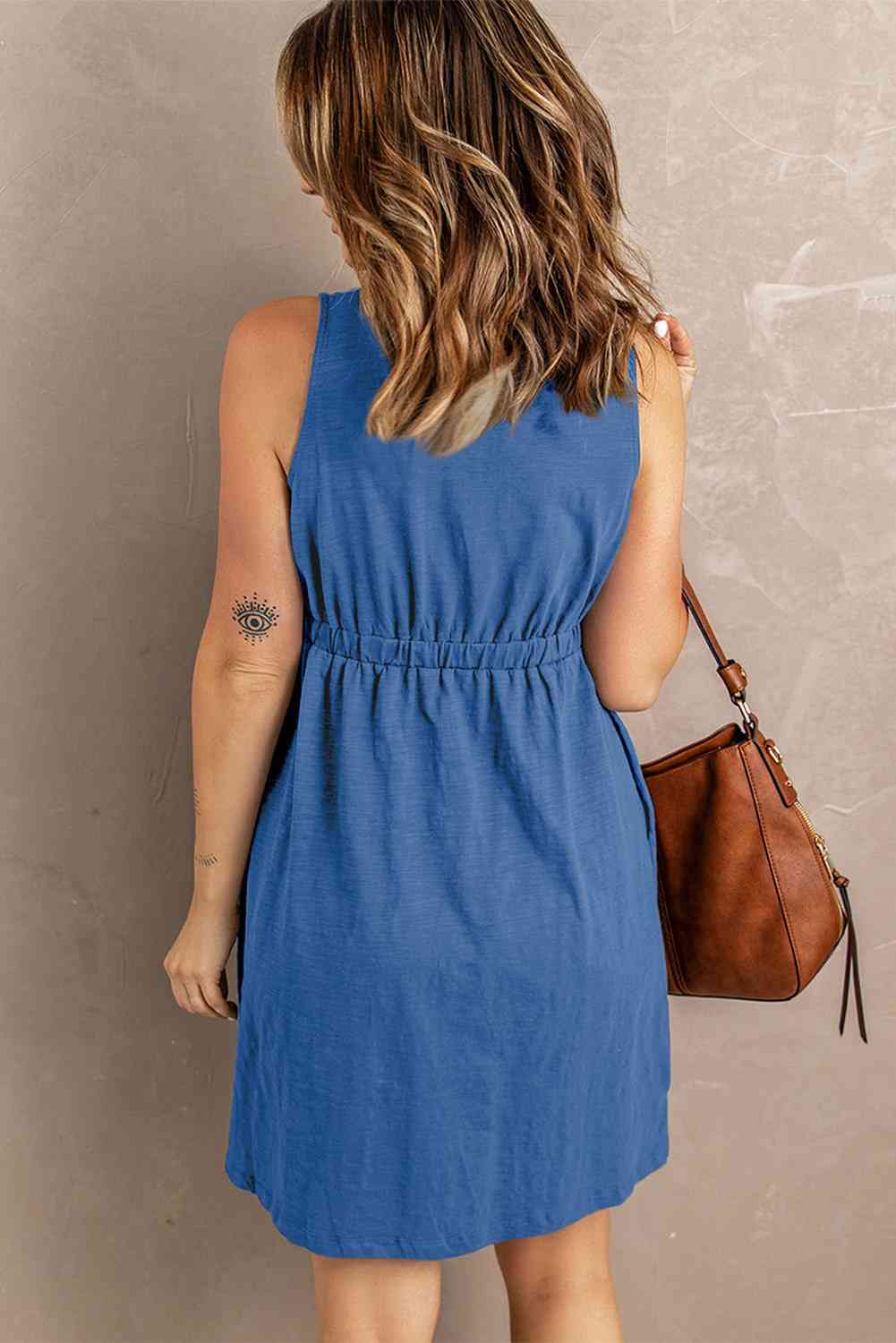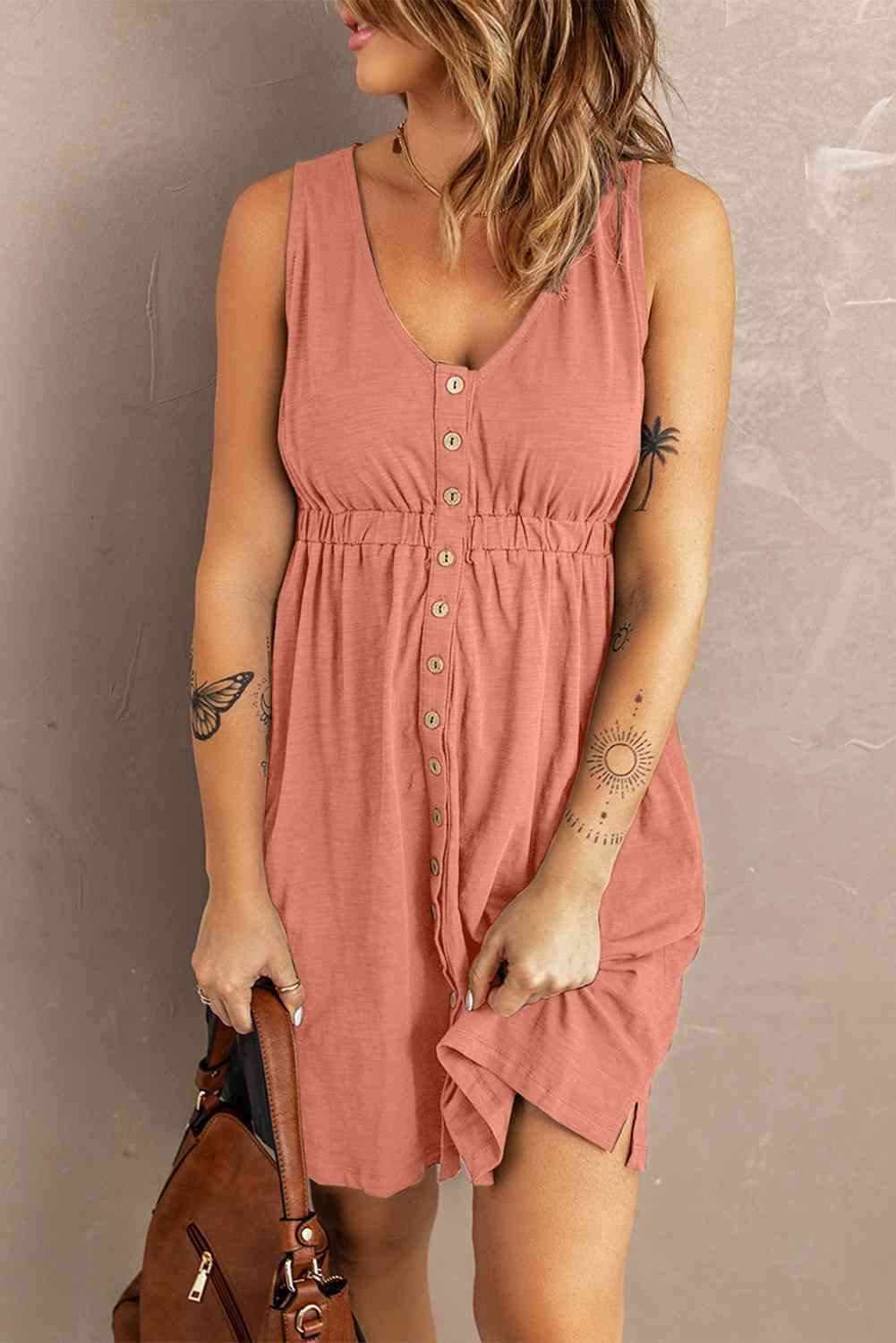 Button Front Empire Waist Sleeveless Slit Magic Dress