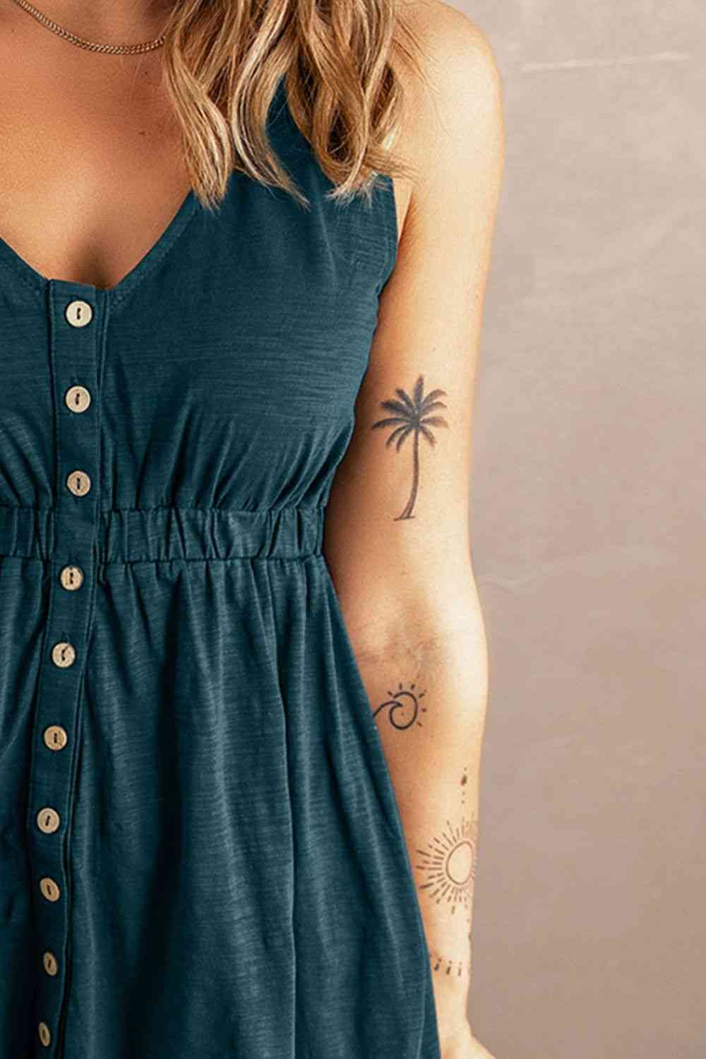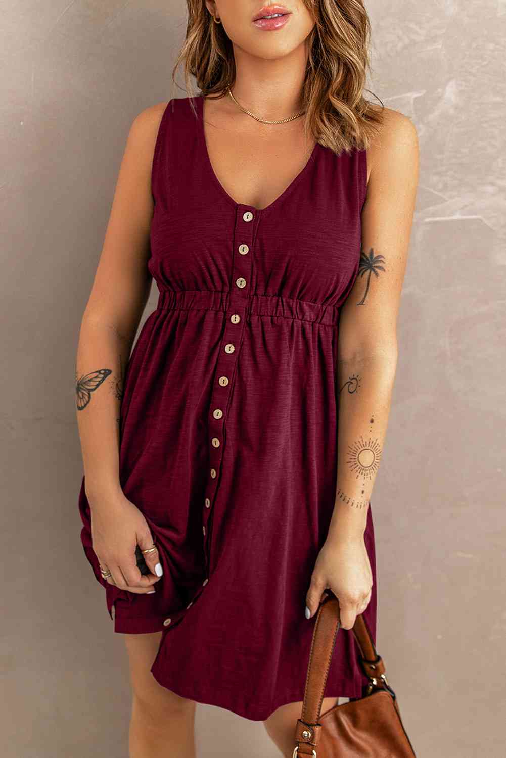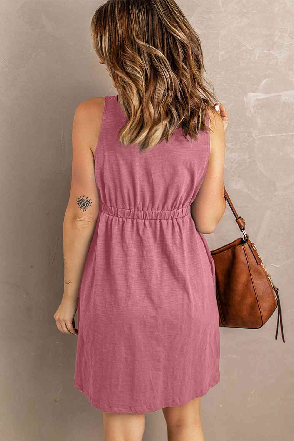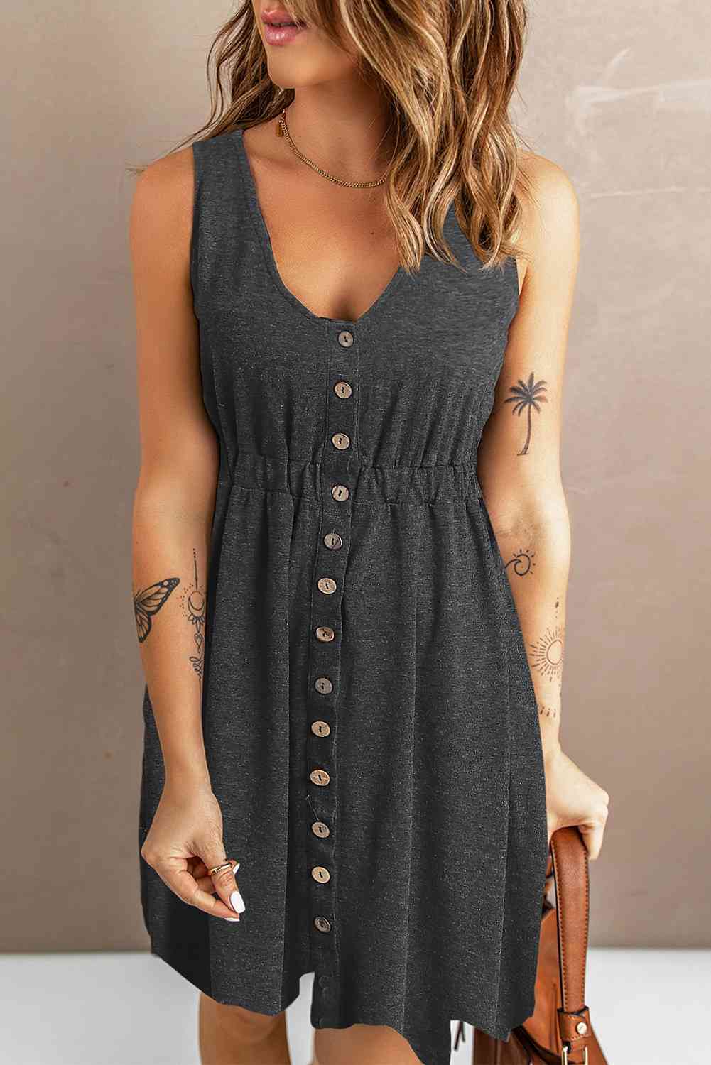 Button Front Empire Waist Sleeveless Slit Magic Dress