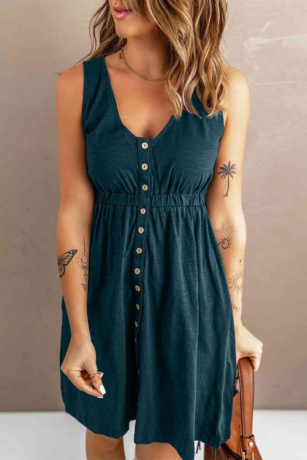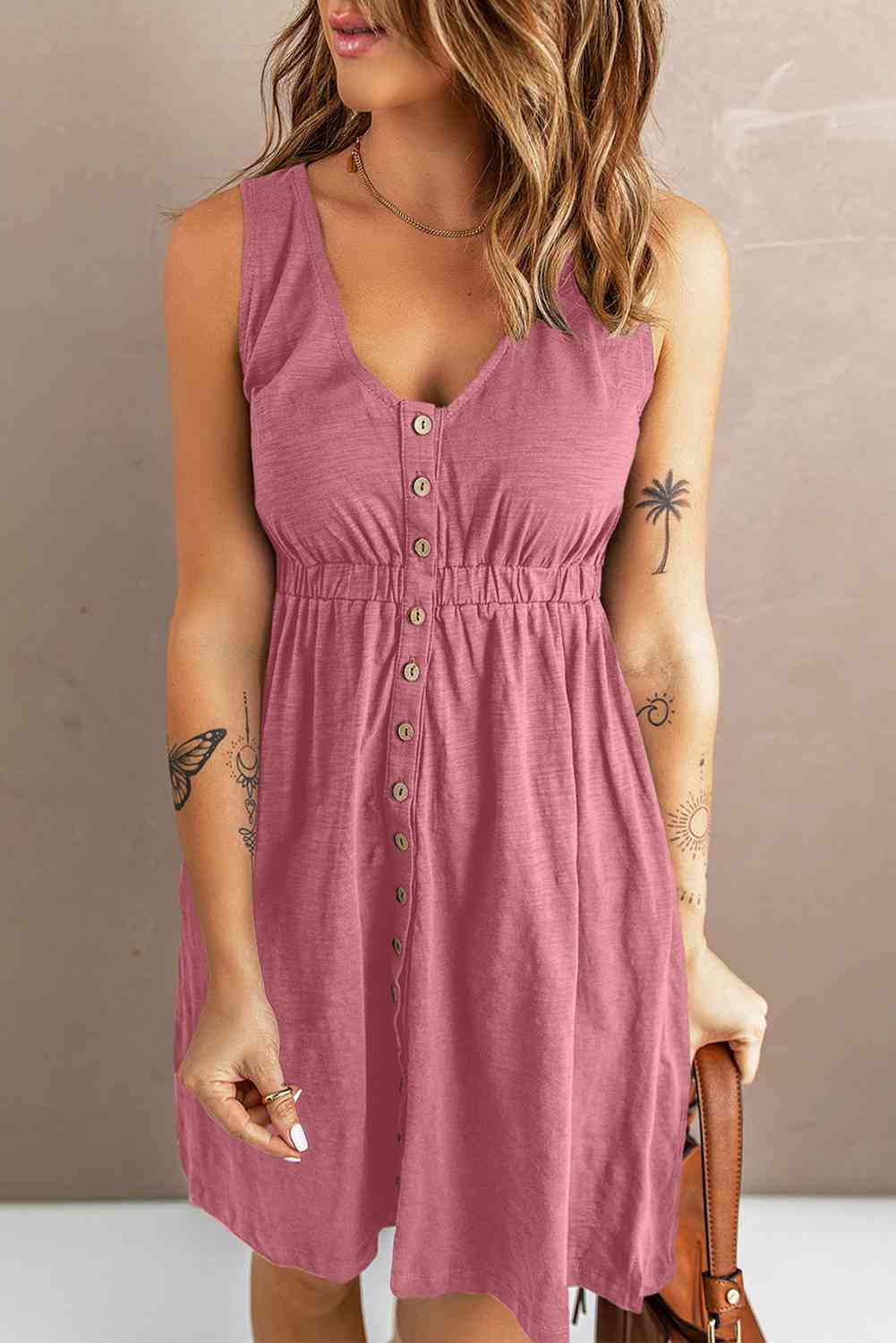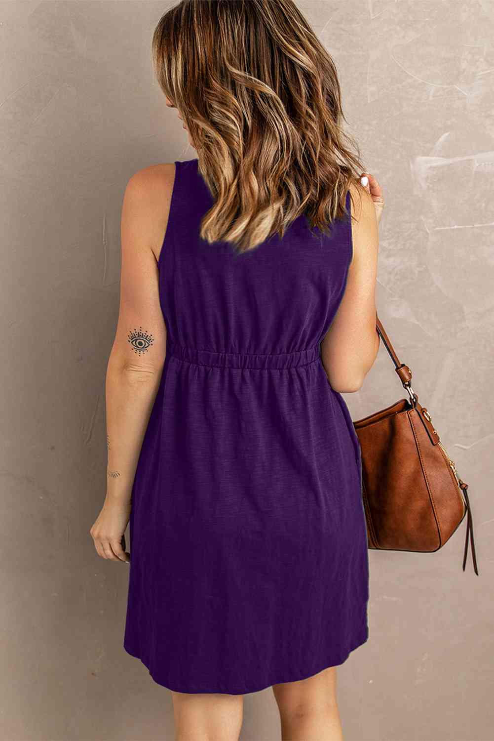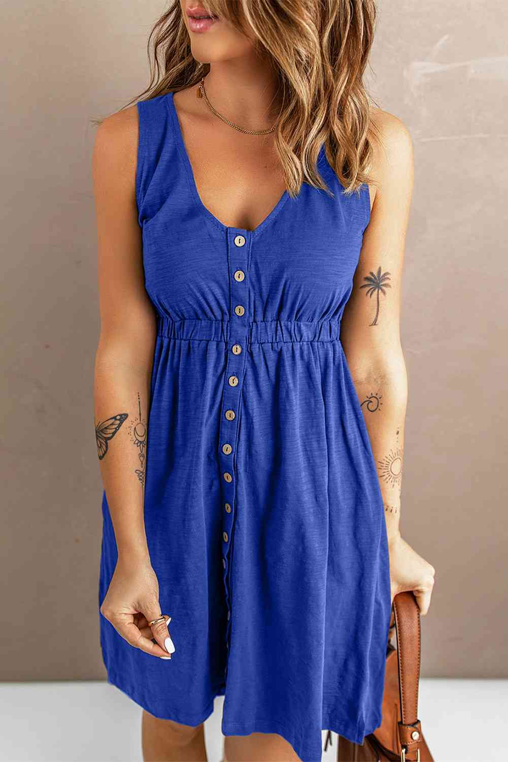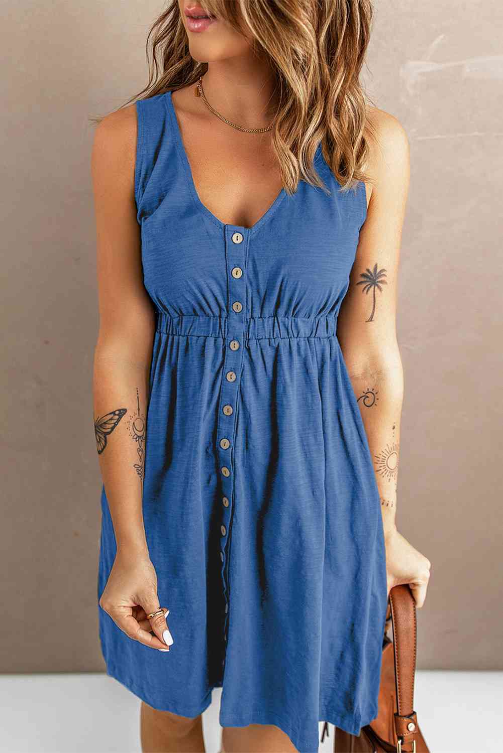 Button Front Empire Waist Sleeveless Slit Magic Dress