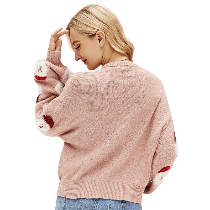 #Christmas# Long Sleeve Round Neck Pullover Sweater small Santa