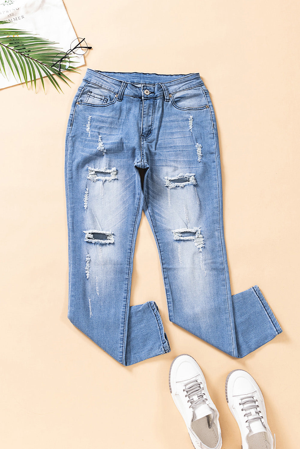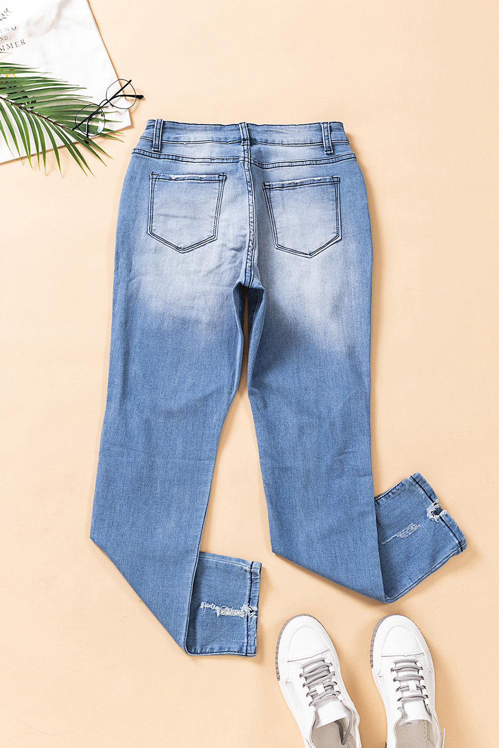 Distressed Ankle-Length Pocket Jeans