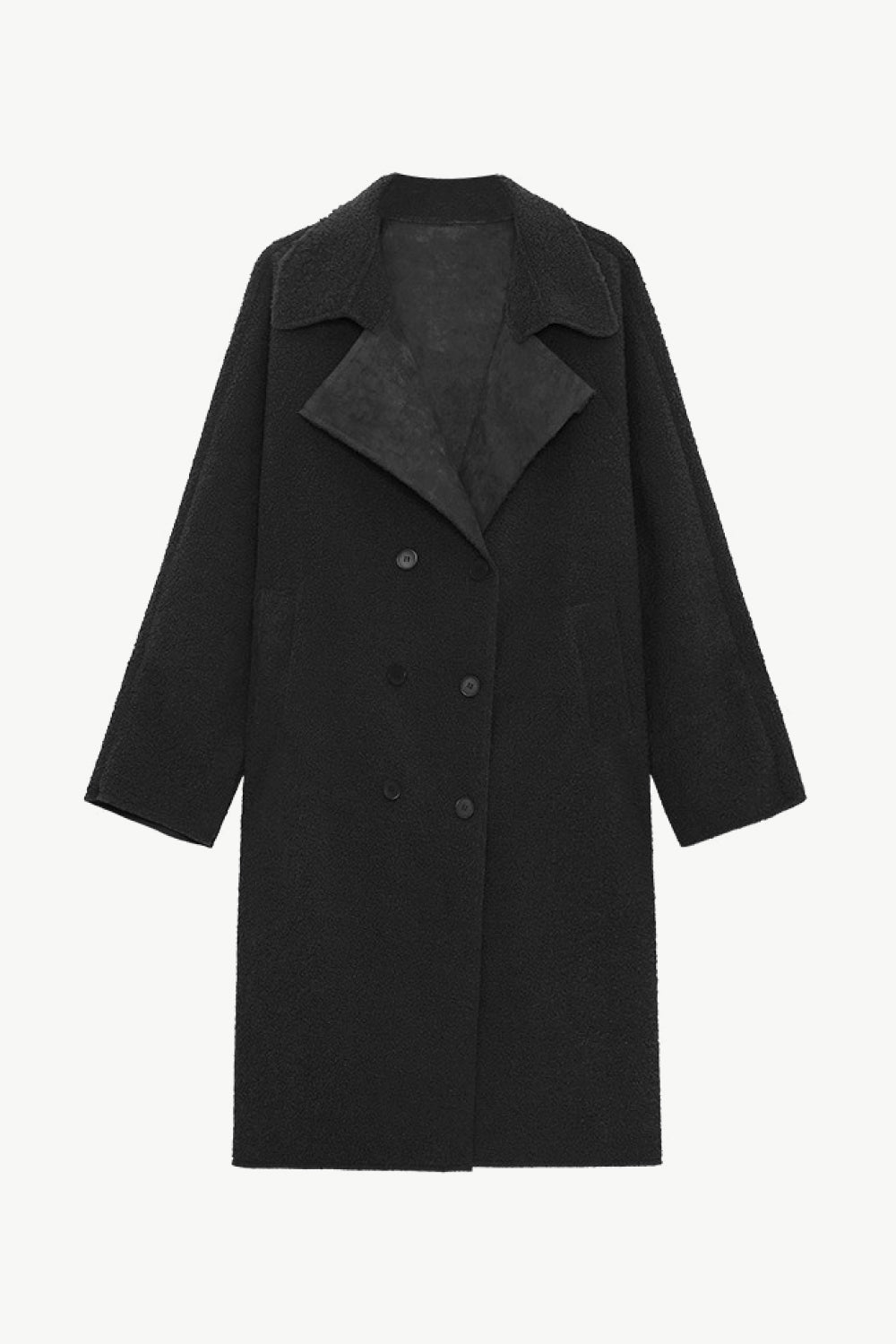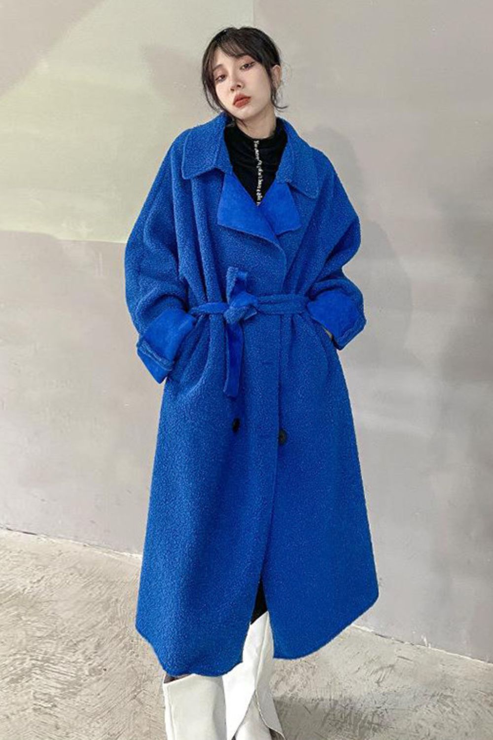 Double-Breasted Belted Lapel Collar Sherpa Coat