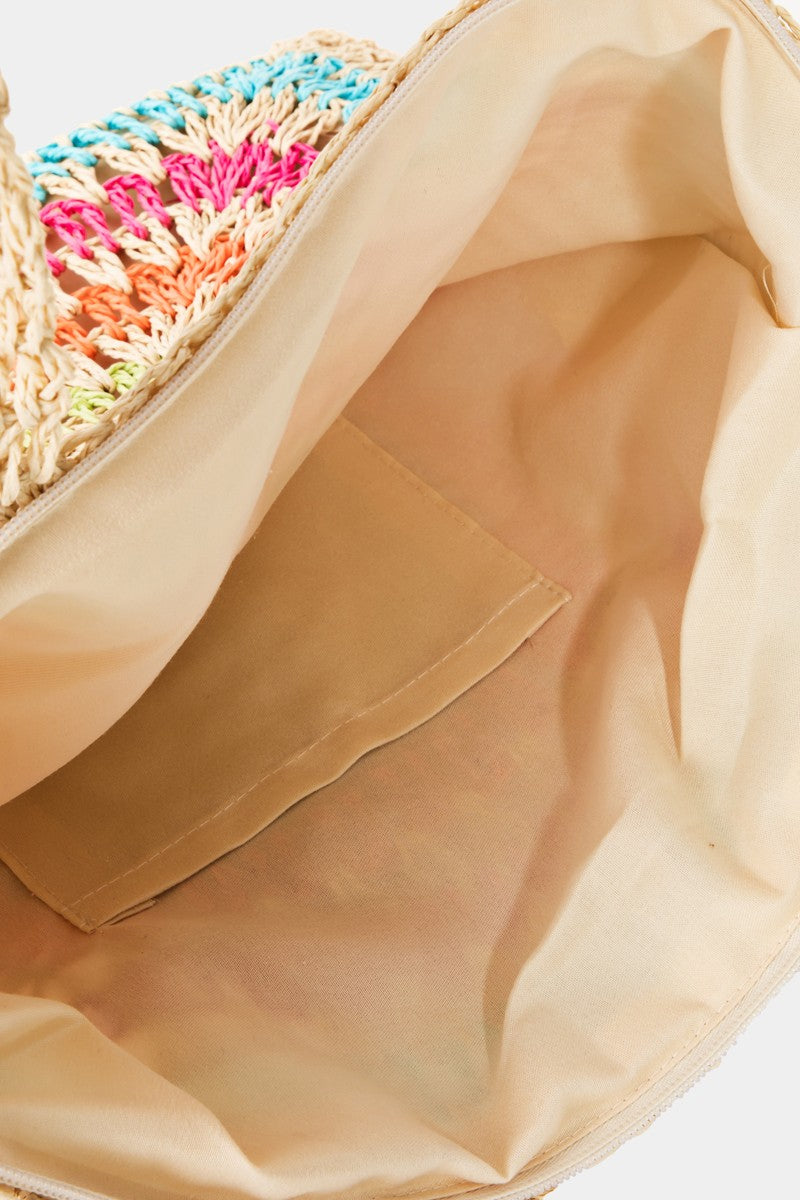 Add a burst of color to your accessory collection with the Rainbow Crochet Knit Tote Bag, a vibrant and stylish piece that is sure to turn heads. This tote bag features a beautiful crochet knit design in a rainbow of colors, creating a cheerful and bohemian look. The spacious interior of the bag makes it perfect for carrying all your essentials with ease and style. Whether you're heading to the beach or running errands in the city, this tote bag will add a pop of color to your ensemble. Embrace the playful and carefree vibes of summer with the Rainbow Crochet Knit Tote Bag, a fun and fashionable choice for any occasion. Elevate your outfit with this eye-catching and versatile tote that combines trendy crochet knit and colorful rainbow hues for a statement look.