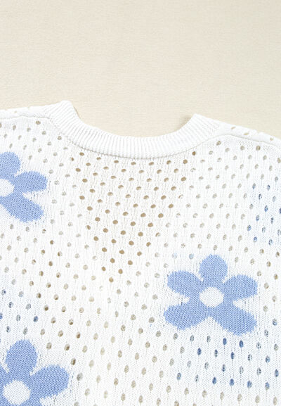 Flower Hollowed Out Button Down Long Sleeve Cardigan