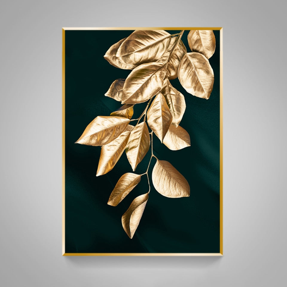 The "Golden Leaves" Canvas Print is a stunning way to decorate your walls with a beautiful painting of leaves.