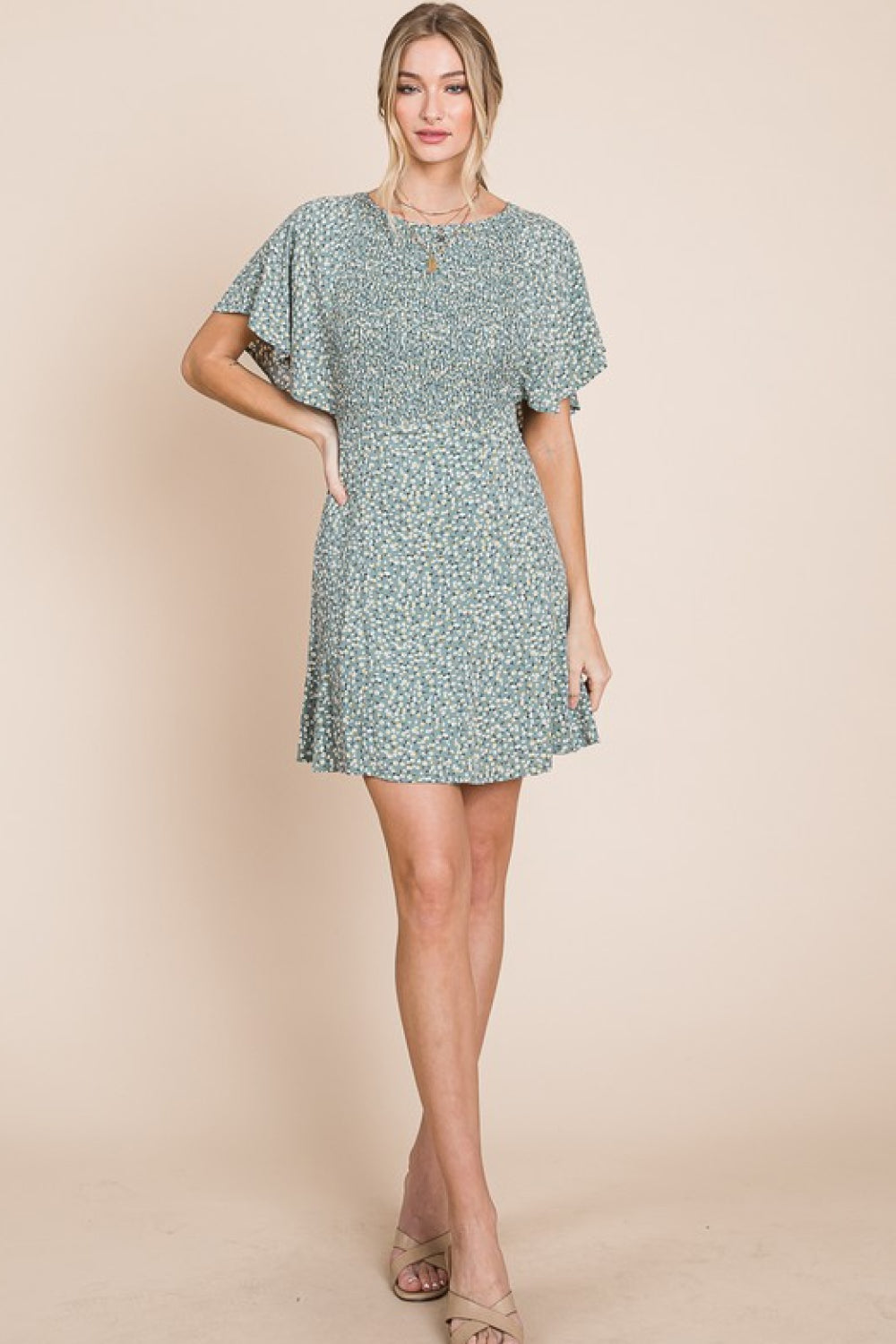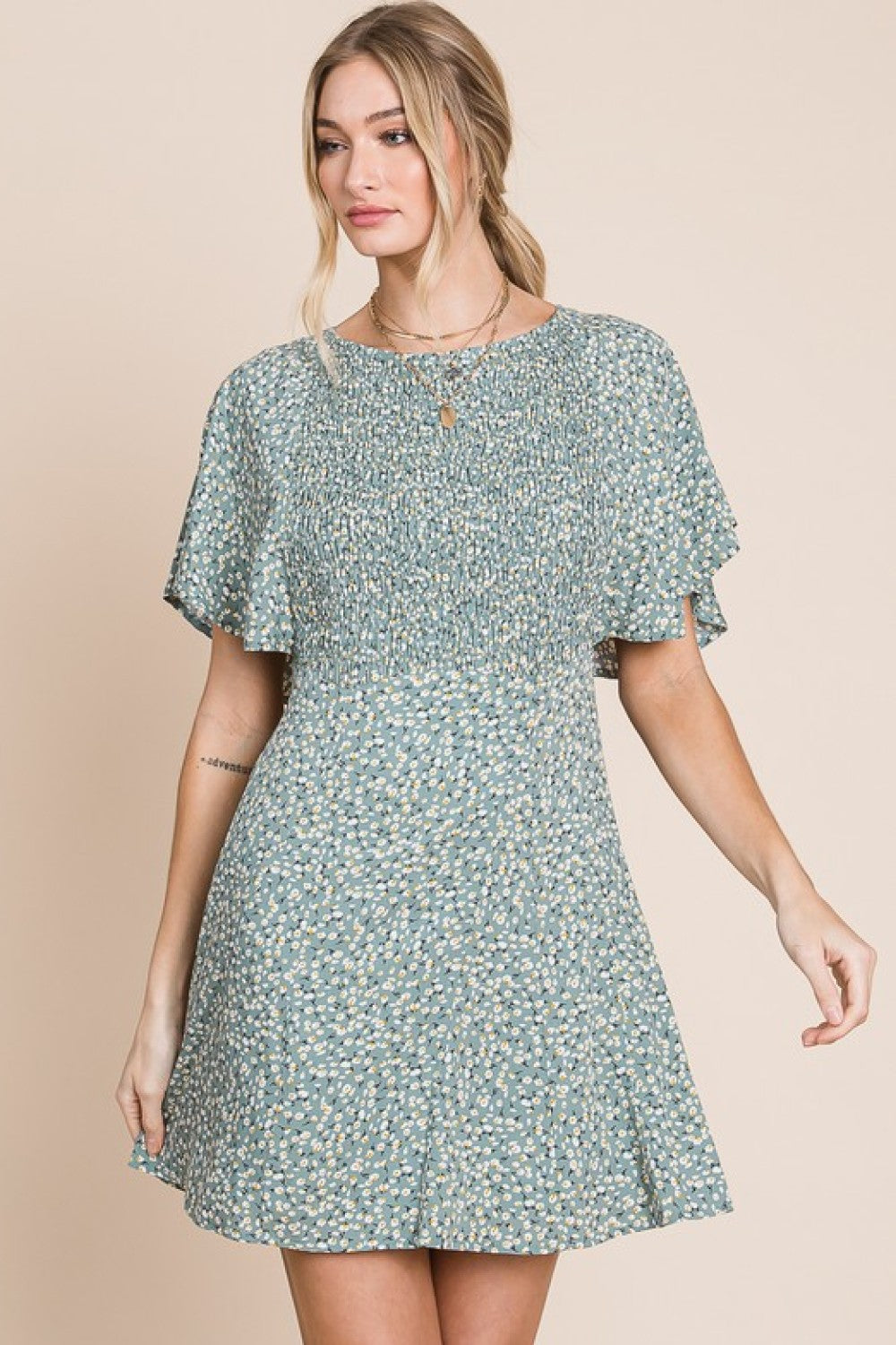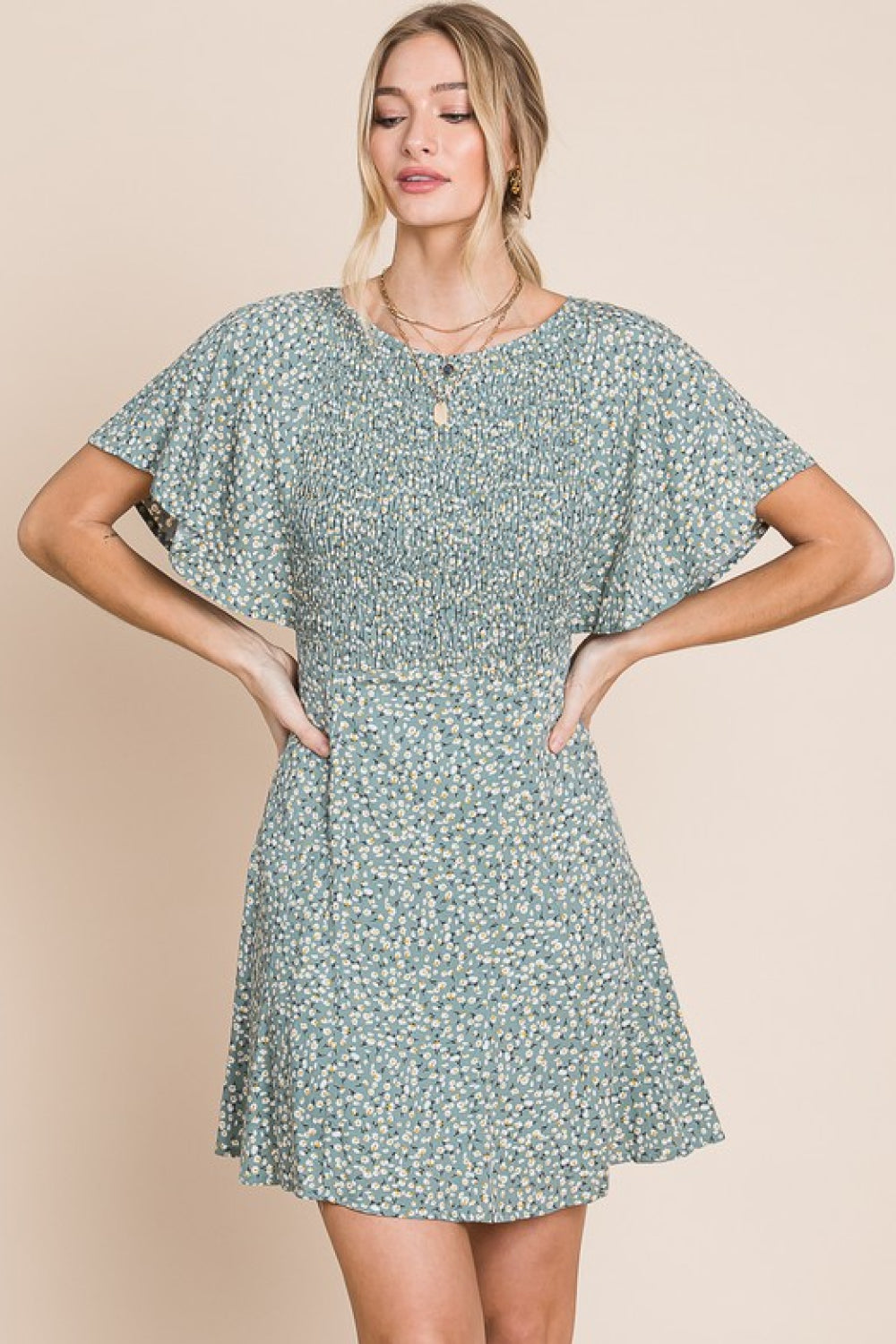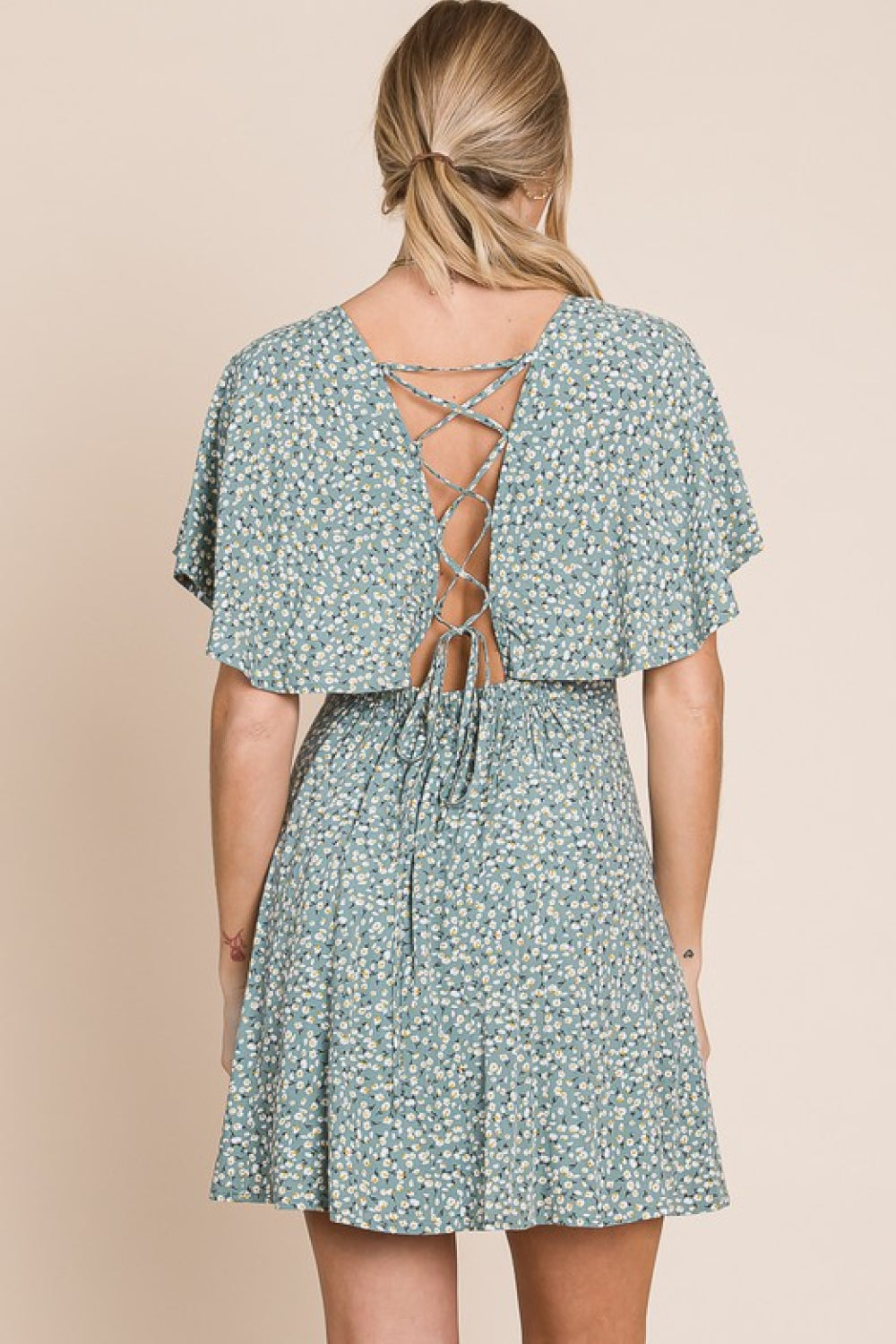 With a smocked chest, lace-up back, and lovely floral print, this dress will have you ready for anything from a picnic at the park to a night at the museum. The flared hemline of the dress hits at fingertip length and not only gives it a youthful touch but also creates an hourglass illusion and a perfect-for-twirling silhouette. The exaggerated flutter sleeves and high neckline balance out the whimsical lace-up back for a sophisticated appearance.