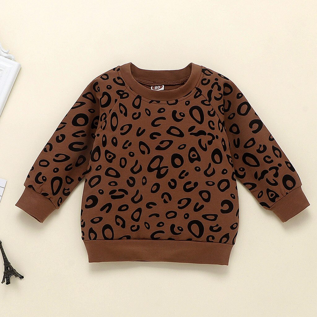Infant Baby Girls Boys Leopard Clothes Long Sleeve Print Casual Loose T-shirt Tops Pants Outfits Clothing