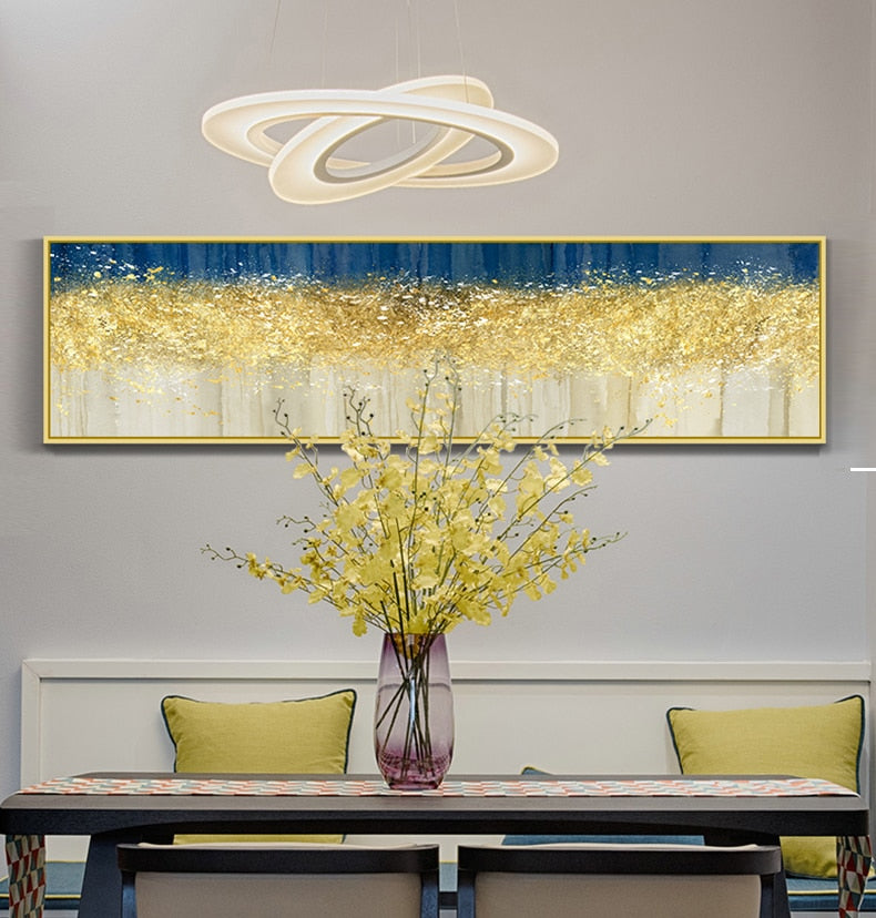 Large Abstract Golden Canvas Blue Landscape