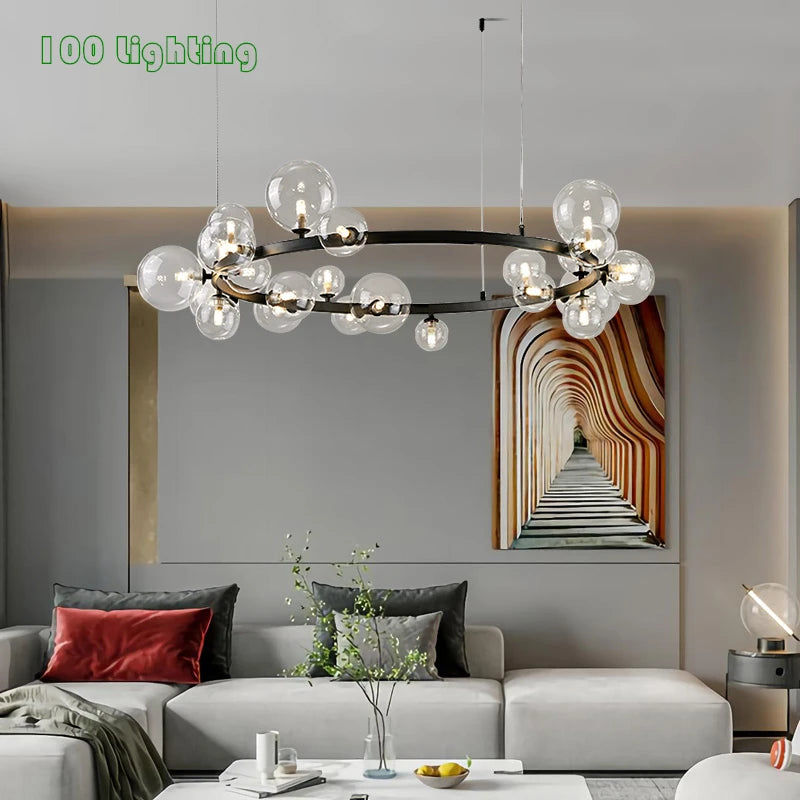 Modern Clear Glass Chandeliers Parlor Foyer Restaurant Hanglamp Bedroom Light Fixtures Silver Metal G9 110-240V Cord Adjustable