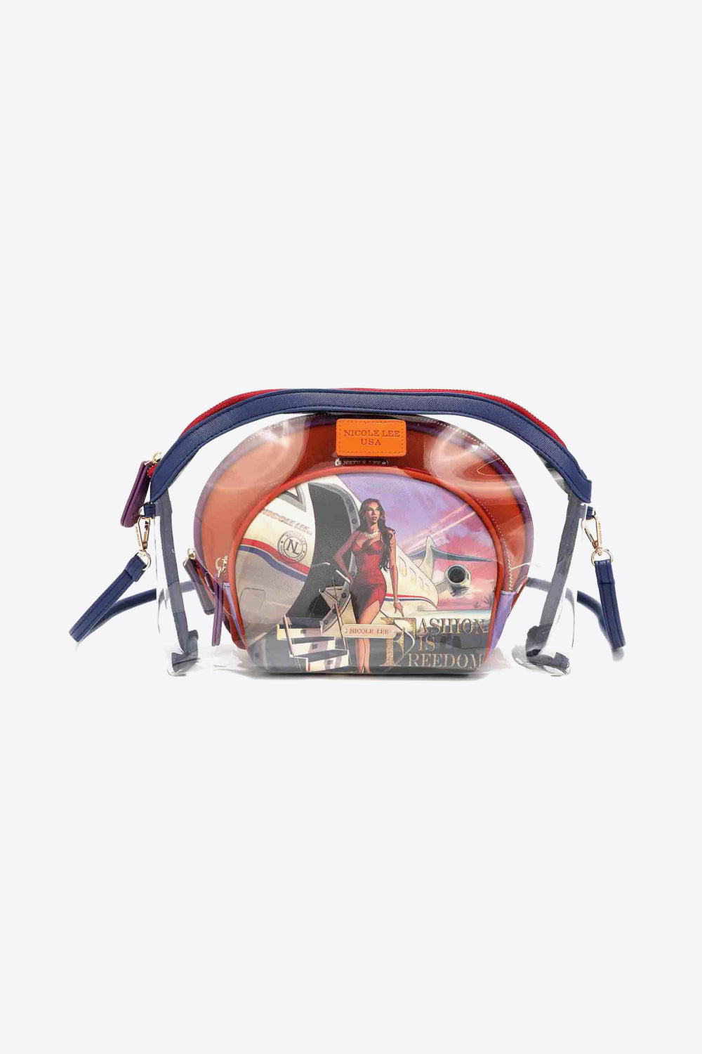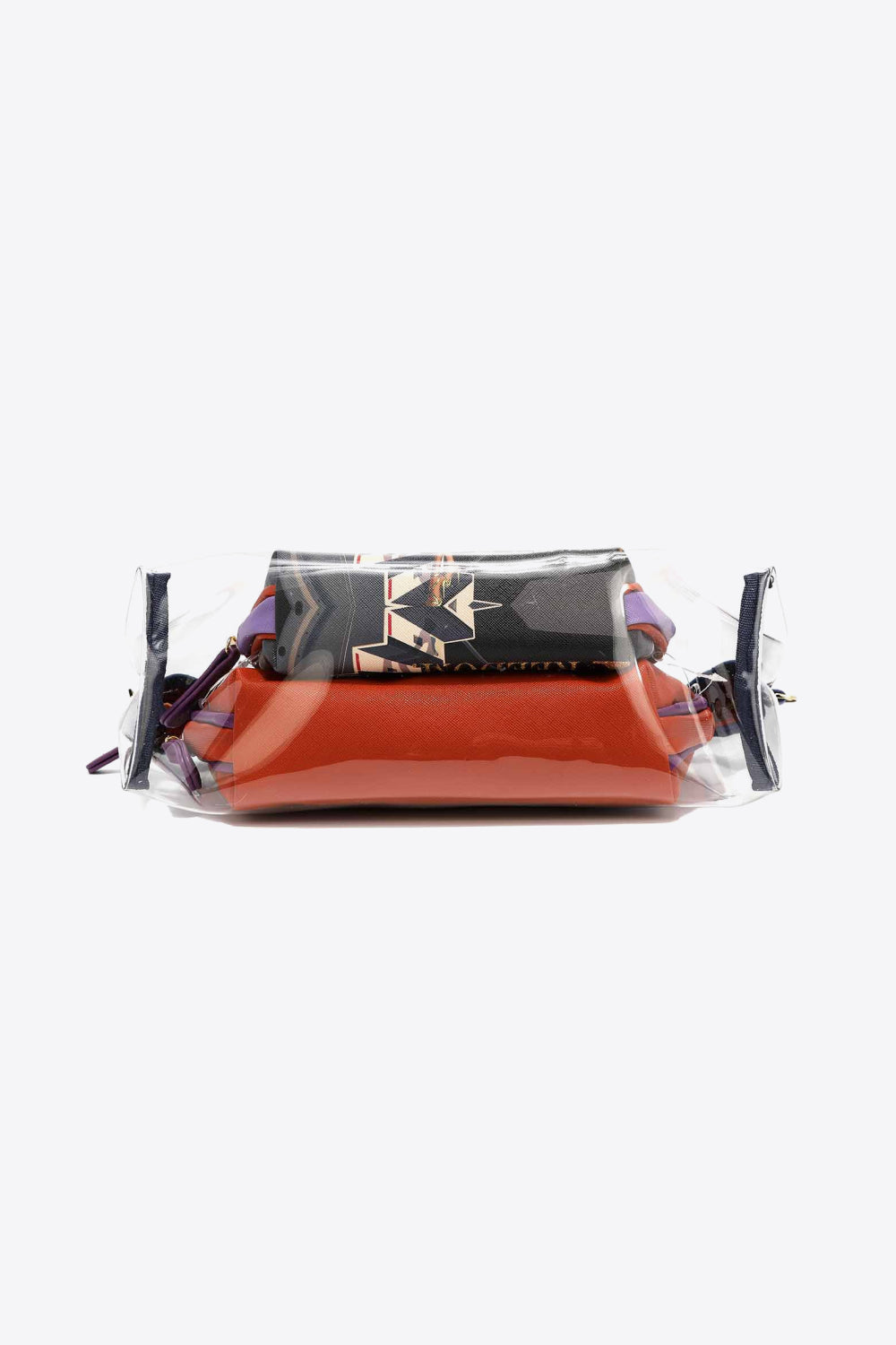 The ultimate accessory for fashion-forward individuals. With the ability to be worn as a crossbody, layered together, or individually, this set offers unparalleled flexibility and style. The large clear puch,the first gem in this collection, features a zip top closure that ensures your belongings stay safe and secure. With dimensions of 11"L x 4"W x 8"H, it provides ample space for all your essentials while maintaining a sleek and transparent design that adds a modern touch to any outfit. Next up is the solid pouch, a sophisticated companion that combines functionality with elegance. Its zip top closure and interior back zip pocket provide convenient storage options, keeping your belongings organized and easily accessible. The inclusion of an optional crossbody strap allows you to carry it in multiple ways, adapting to your personal style. With dimensions of 10.5"L x 2.25"W x 7"H, it strikes the perfect balance between compactness and spaciousness. Completing the set is the charming printed pouch, showcasing a delightful pattern that adds a pop of personality to your ensemble. Like its counterparts, it boasts a zip top closure and an interior back zip pocket, offering both security and organization. With dimensions of 8"L x 2"W x 5.5"H, it is compact enough to effortlessly fit into any handbag or be carried on its own.