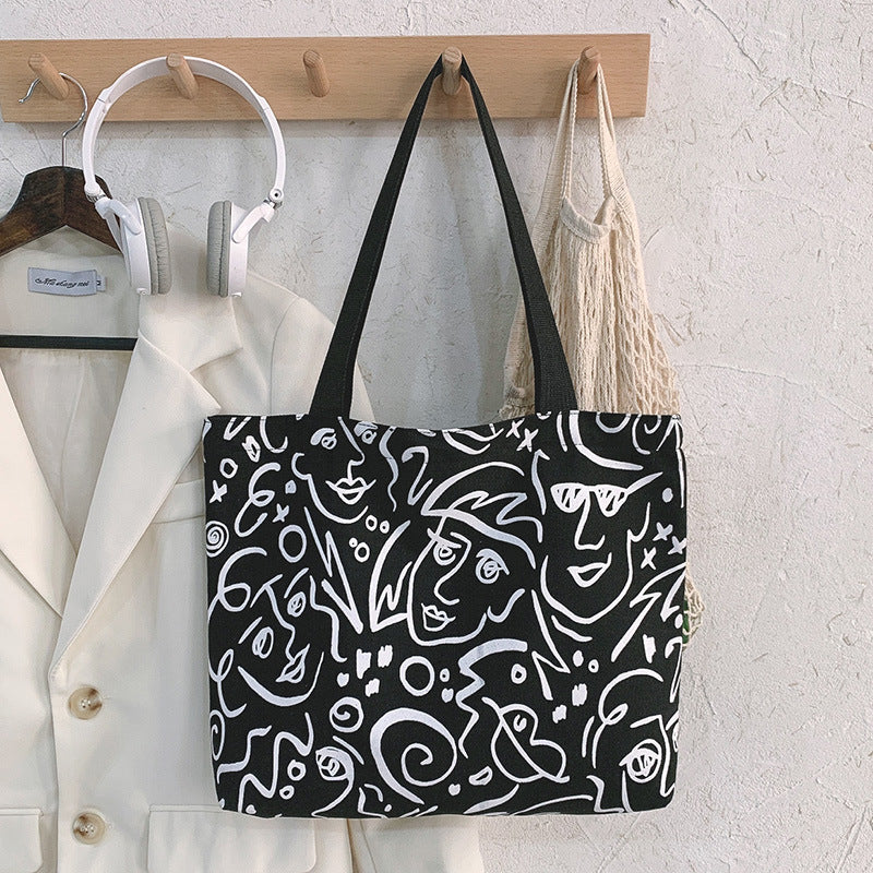 Personalized Graffiti Canvas Bag Large Capacity Casual Fashion All-Match Shopping Tote Bag Ins Fresh And Sweet Shoulder Bag