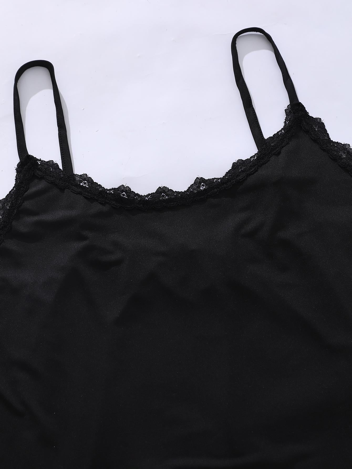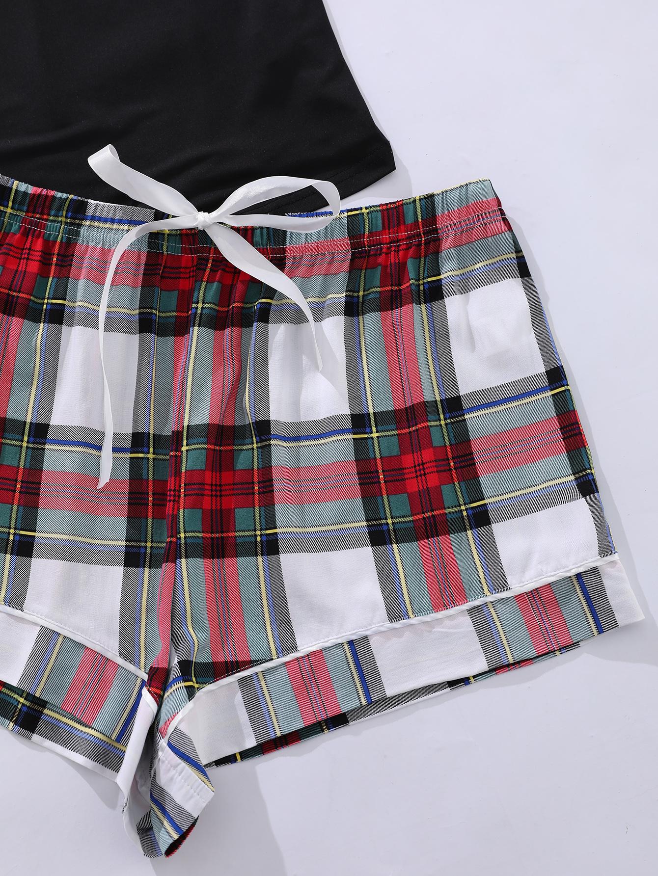 Plus Size Lace Trim Scoop Neck Cami and Printed Shorts Pajama Set
