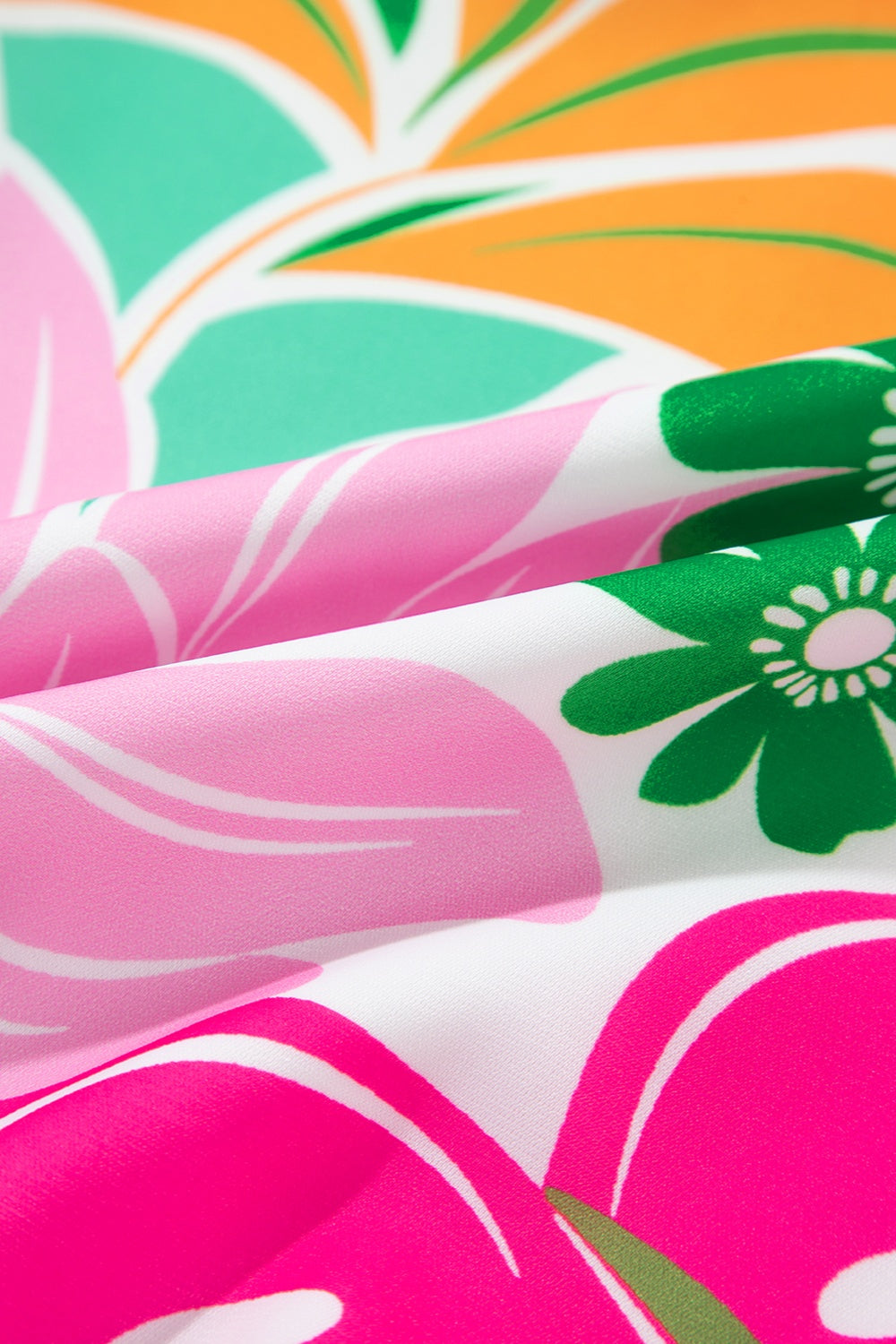 Printed Tie Waist Lantern Sleeve Mini Dress