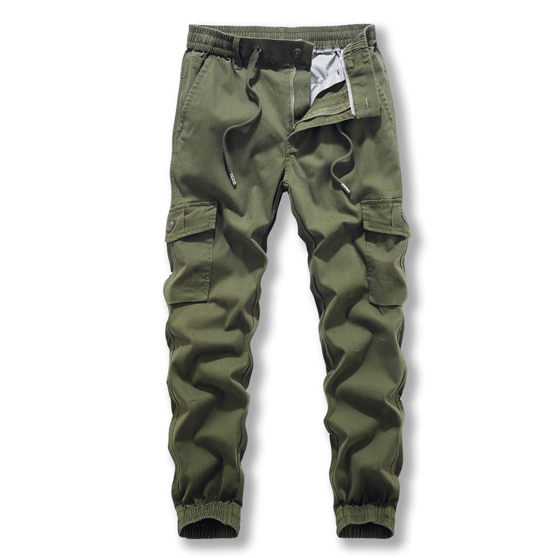 Pure cotton overalls: Men's new trend, washed pure color, legged, multi pocket, casual pants